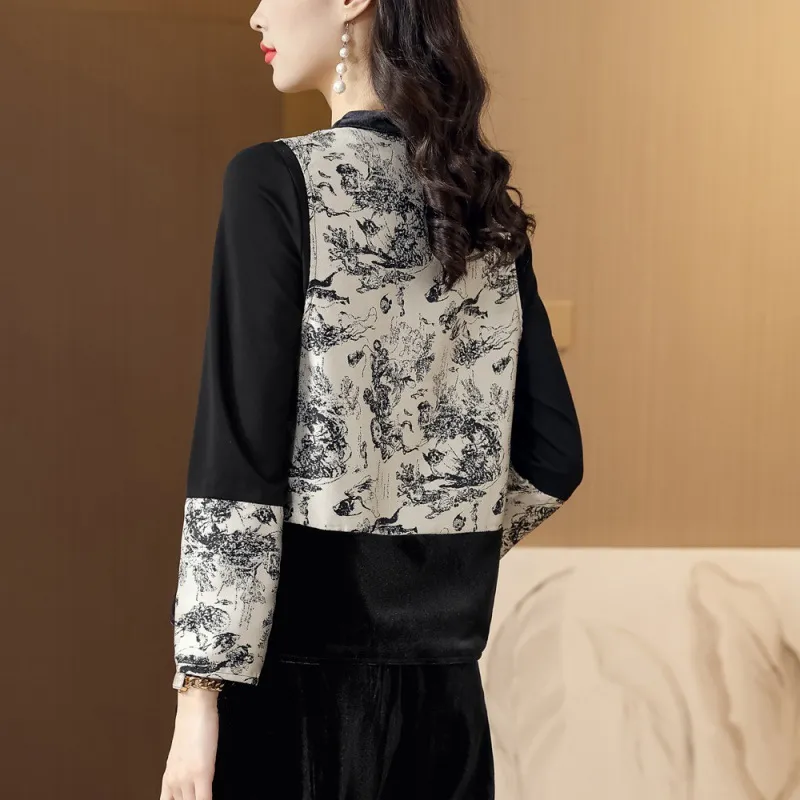 衣都精品- 2023新款圓領修身水墨畫提花長袖上衣