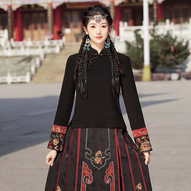 衣都精品- 2023新款民族風盤扣重工刺繡馬面裙