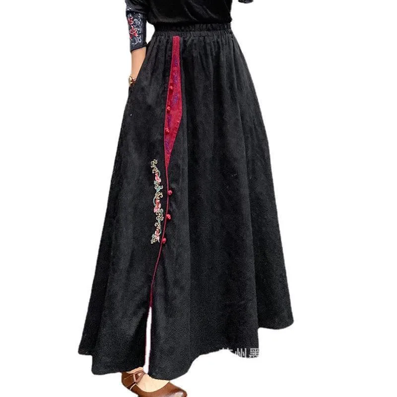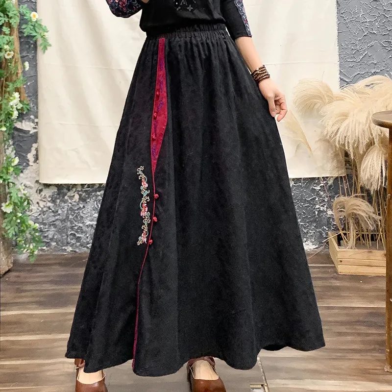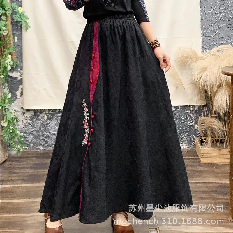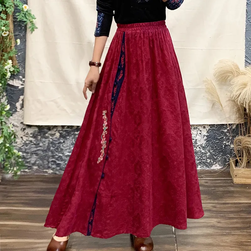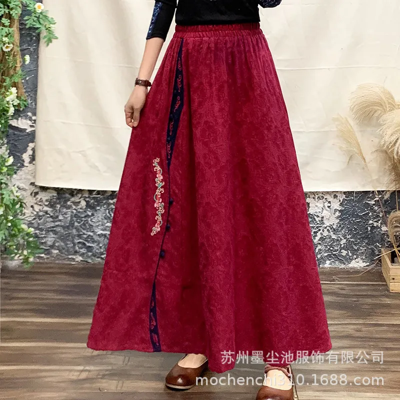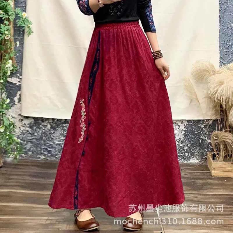 衣都精品- 2023新款民族風提花刺繡棉麻混紡半身裙