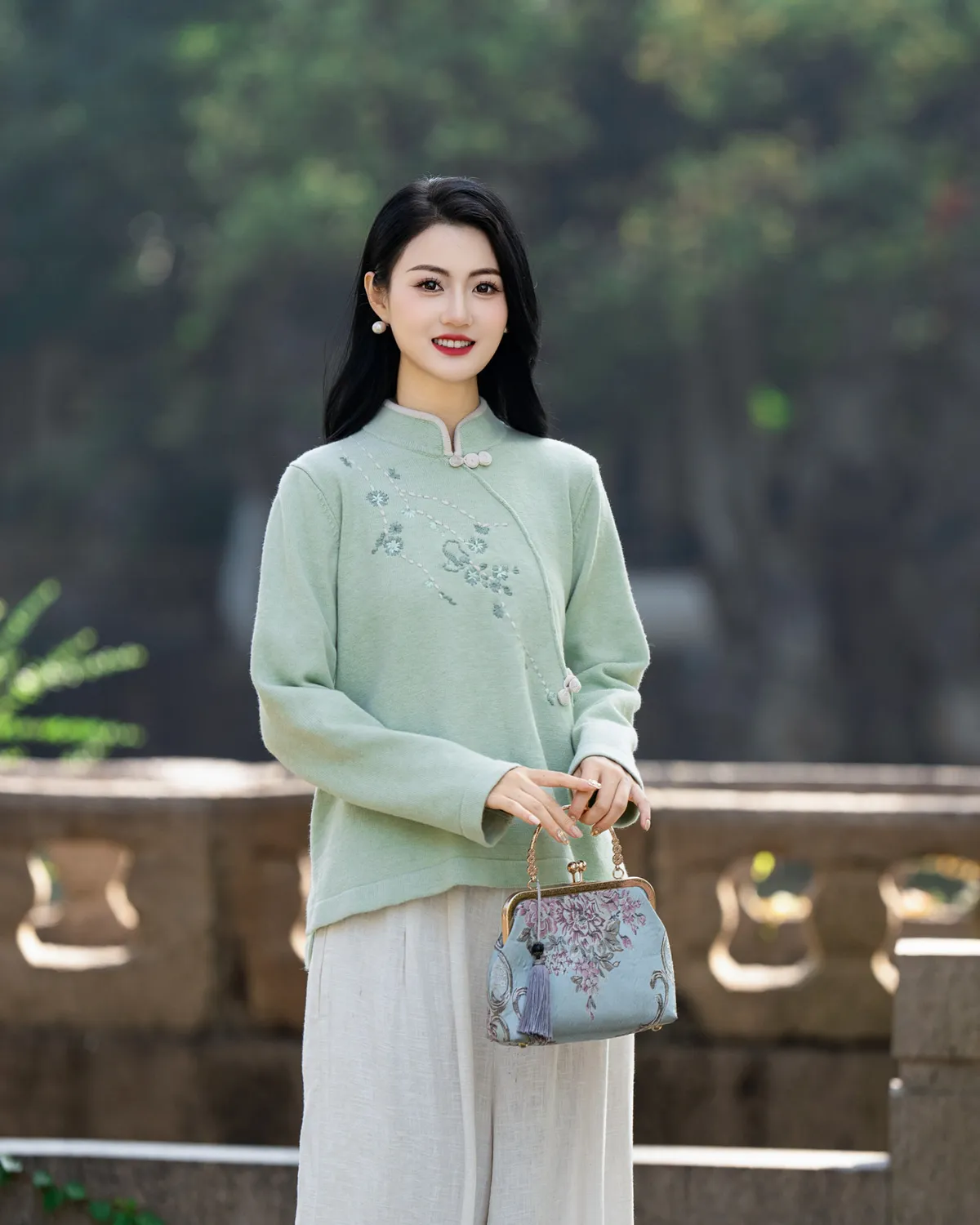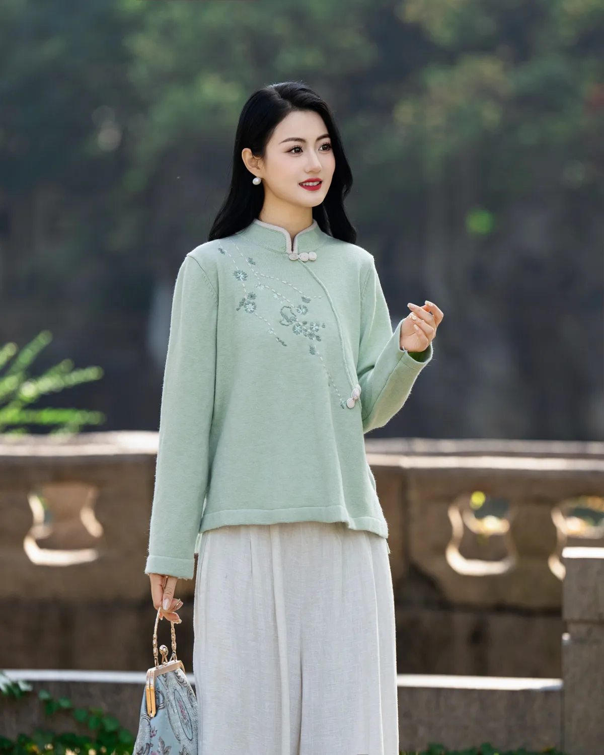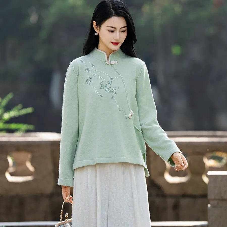 衣都精品- 2023新款民族風刺繡立領繡花長袖上衣