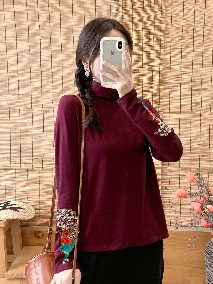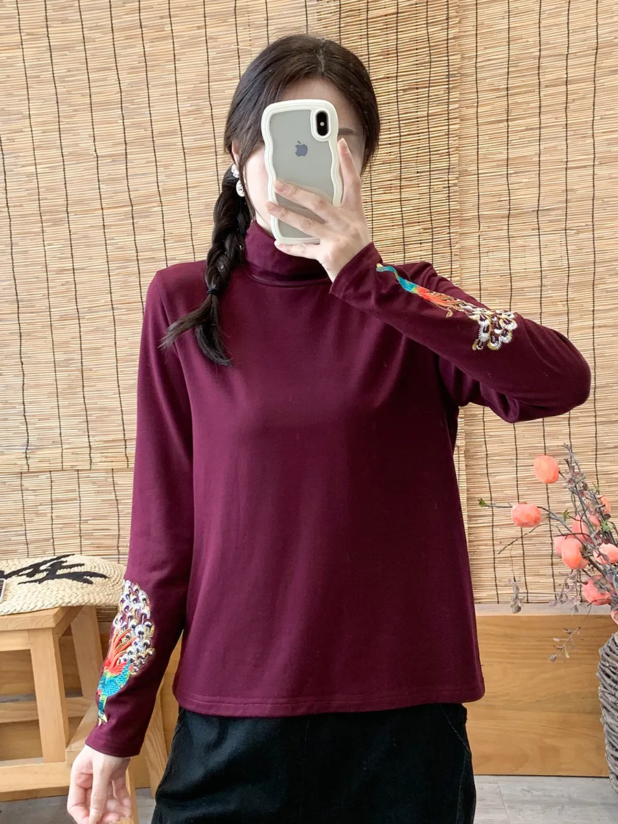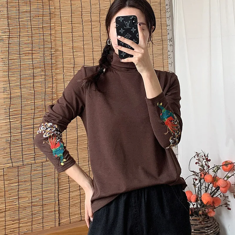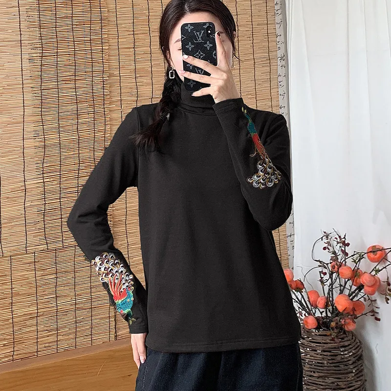 衣都精品- 2023新款中國風袖口刺繡內搭高領保暖德絨上衣
