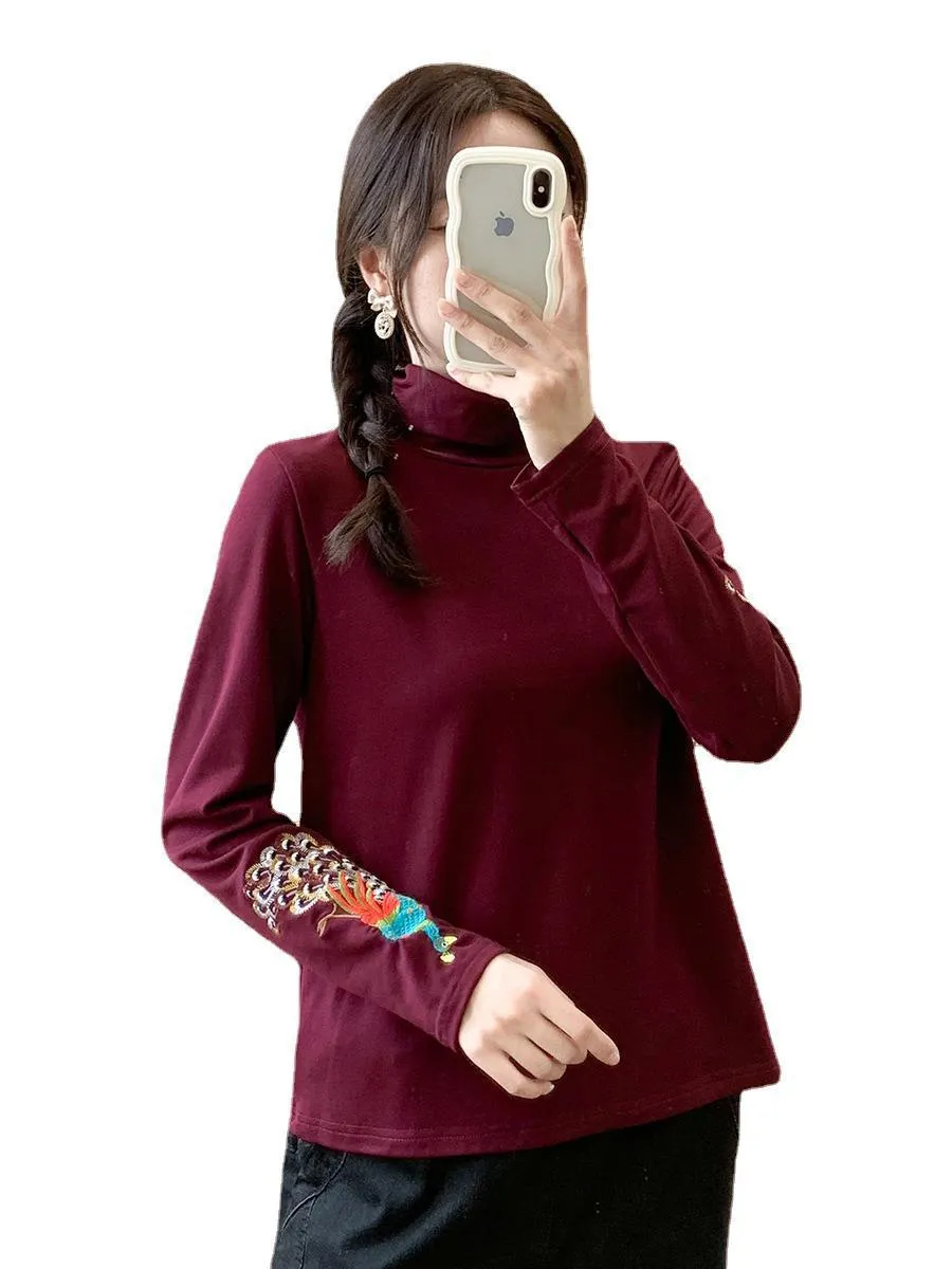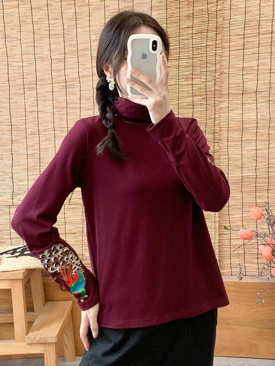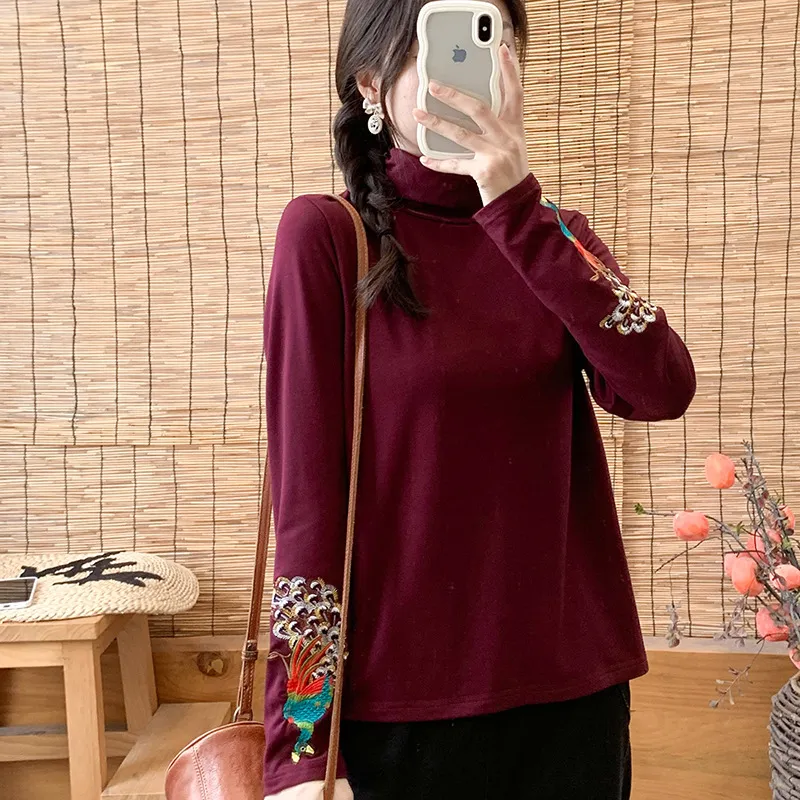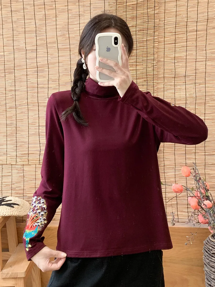 衣都精品- 2023新款中國風袖口刺繡內搭高領保暖德絨上衣