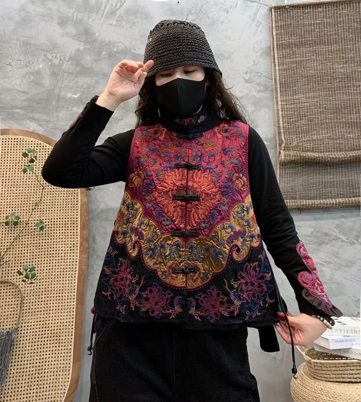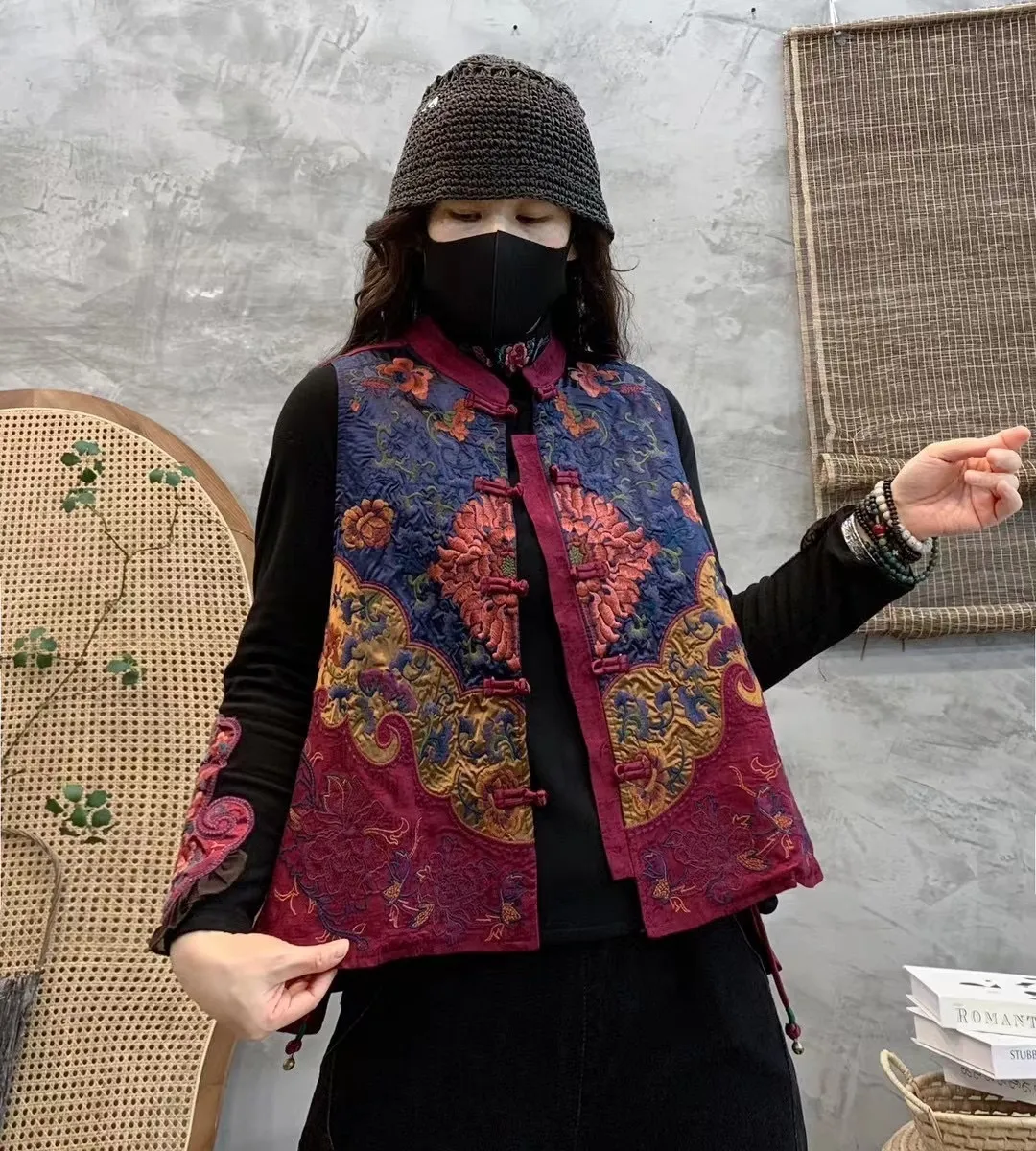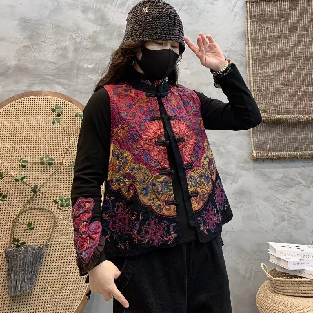 衣都精品- 2023新款民族風盤扣刺繡無袖馬甲外套