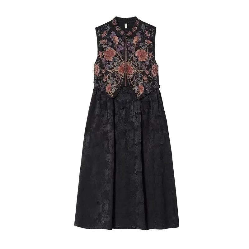 衣都精品- 2023新款民族風重工刺繡提花緞面無袖連衣裙