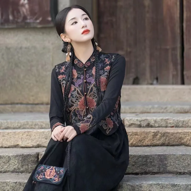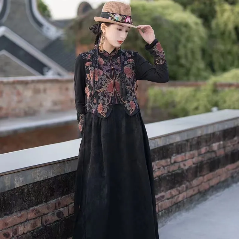 衣都精品- 2023新款復古中國風改良旗袍刺繡背心外套