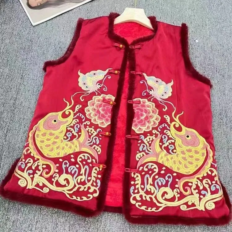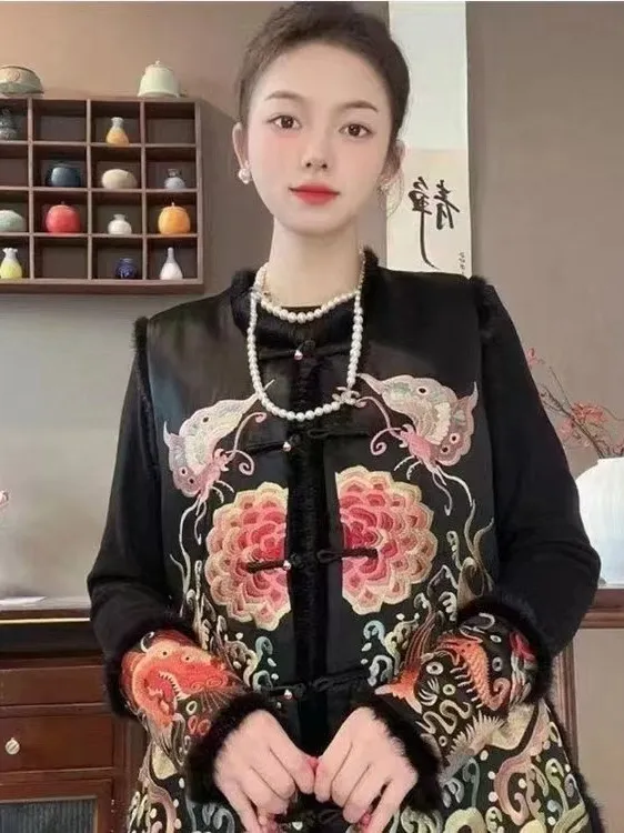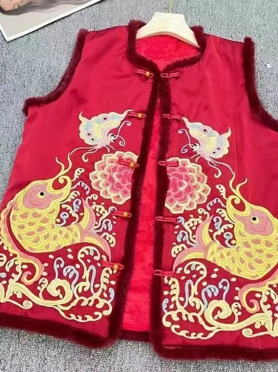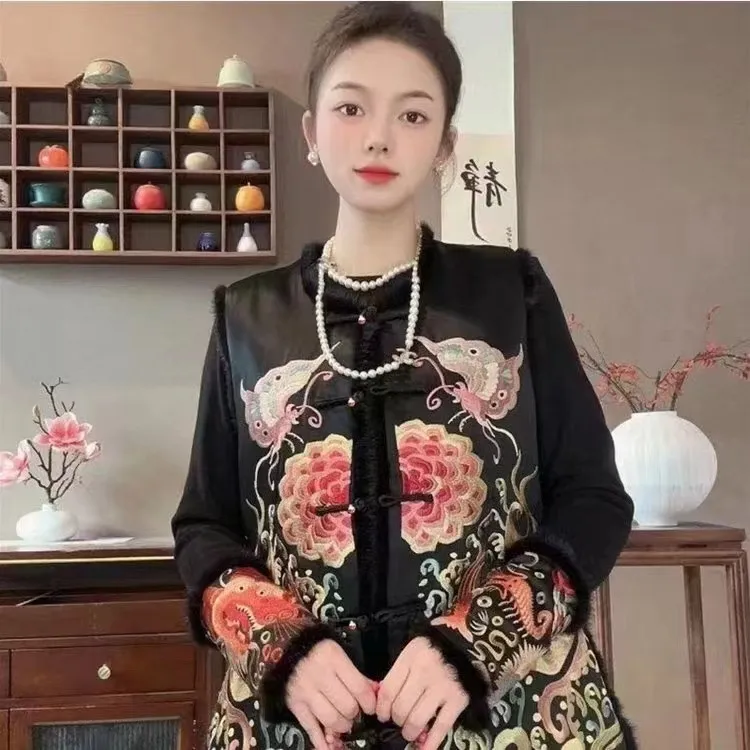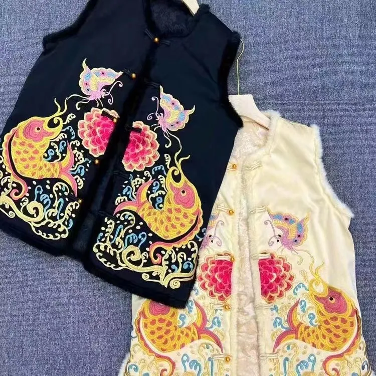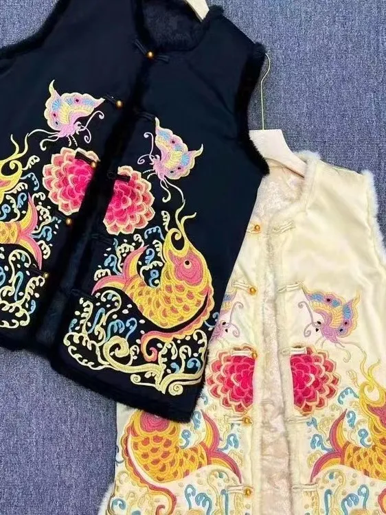衣都精品- 2023新款民族風刺繡文藝開襟保暖馬甲