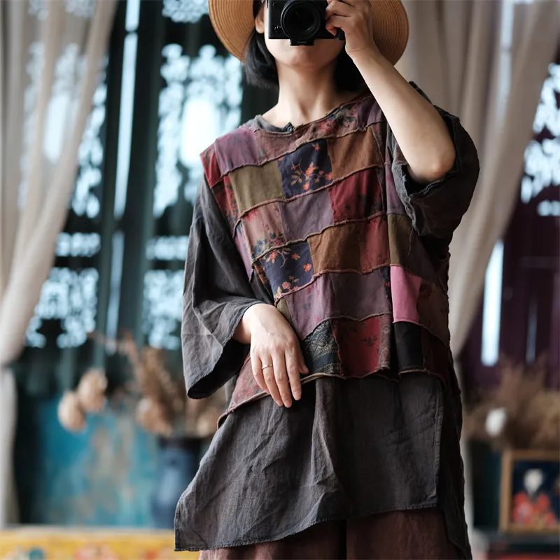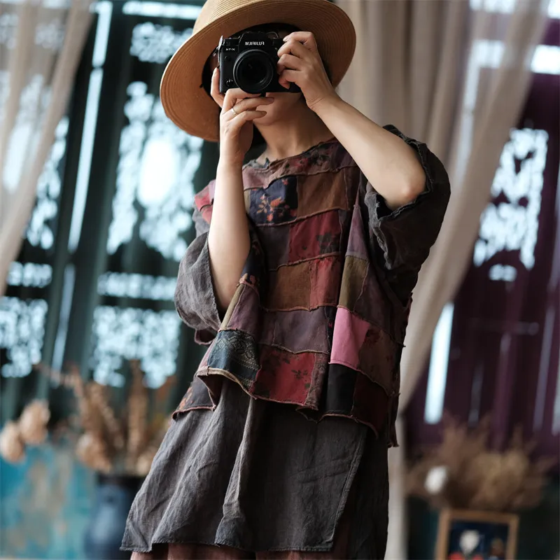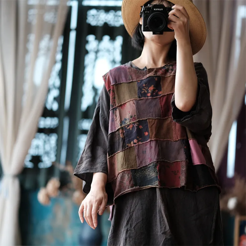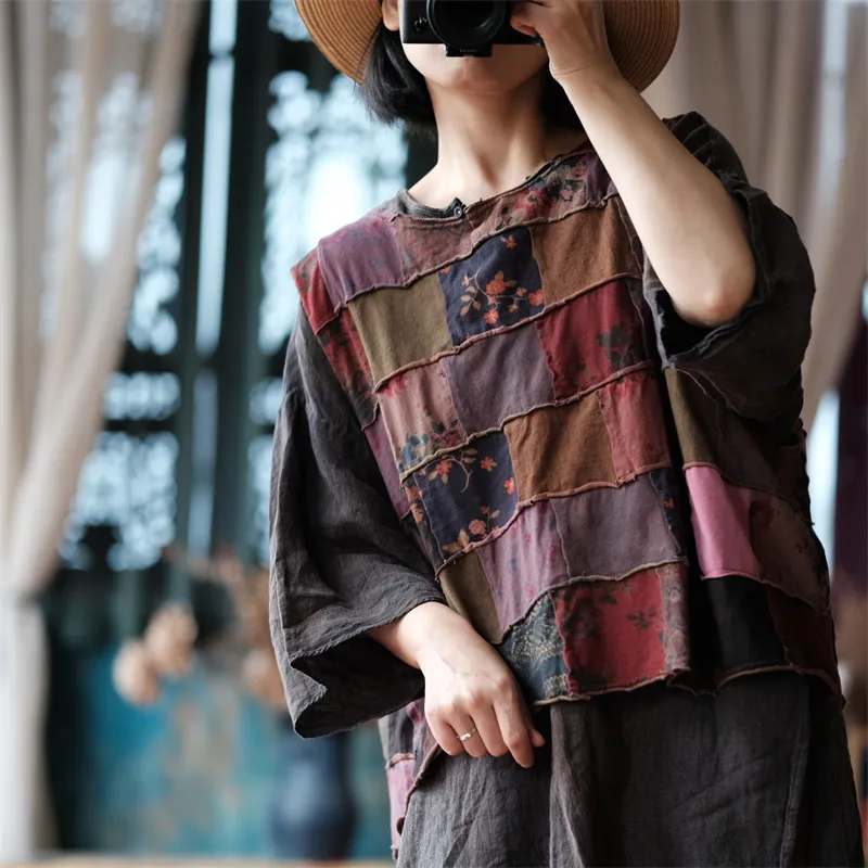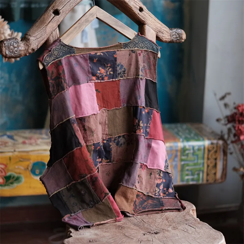 衣都精品- 2023新款乞丐風純棉拼布圓領背心上衣