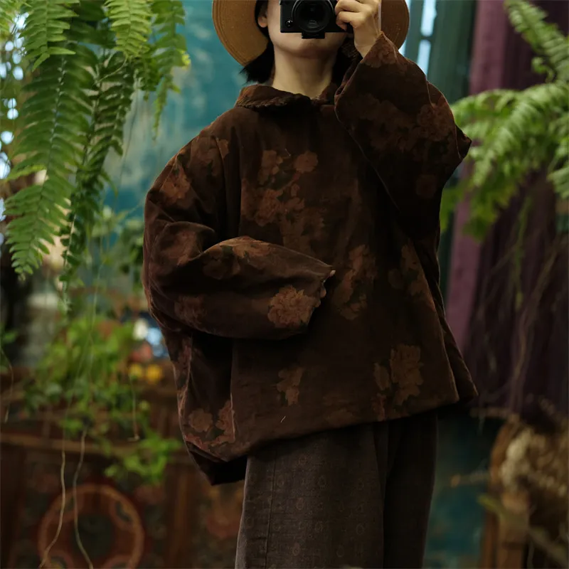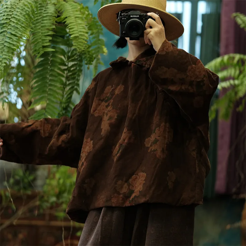 衣都精品- 2023新款純棉翻領盤扣套頭寬鬆上衣