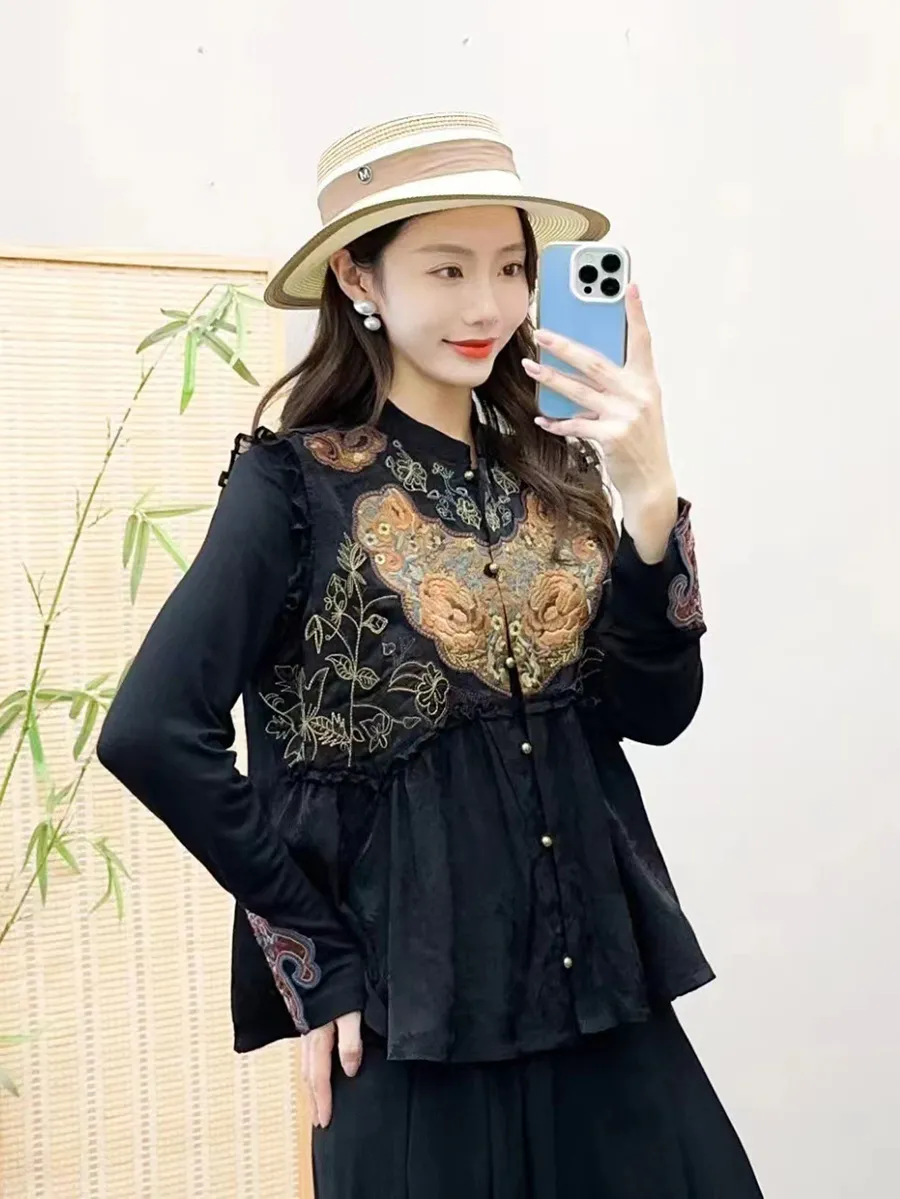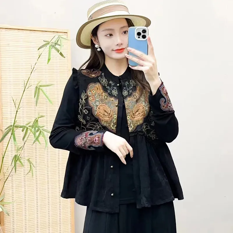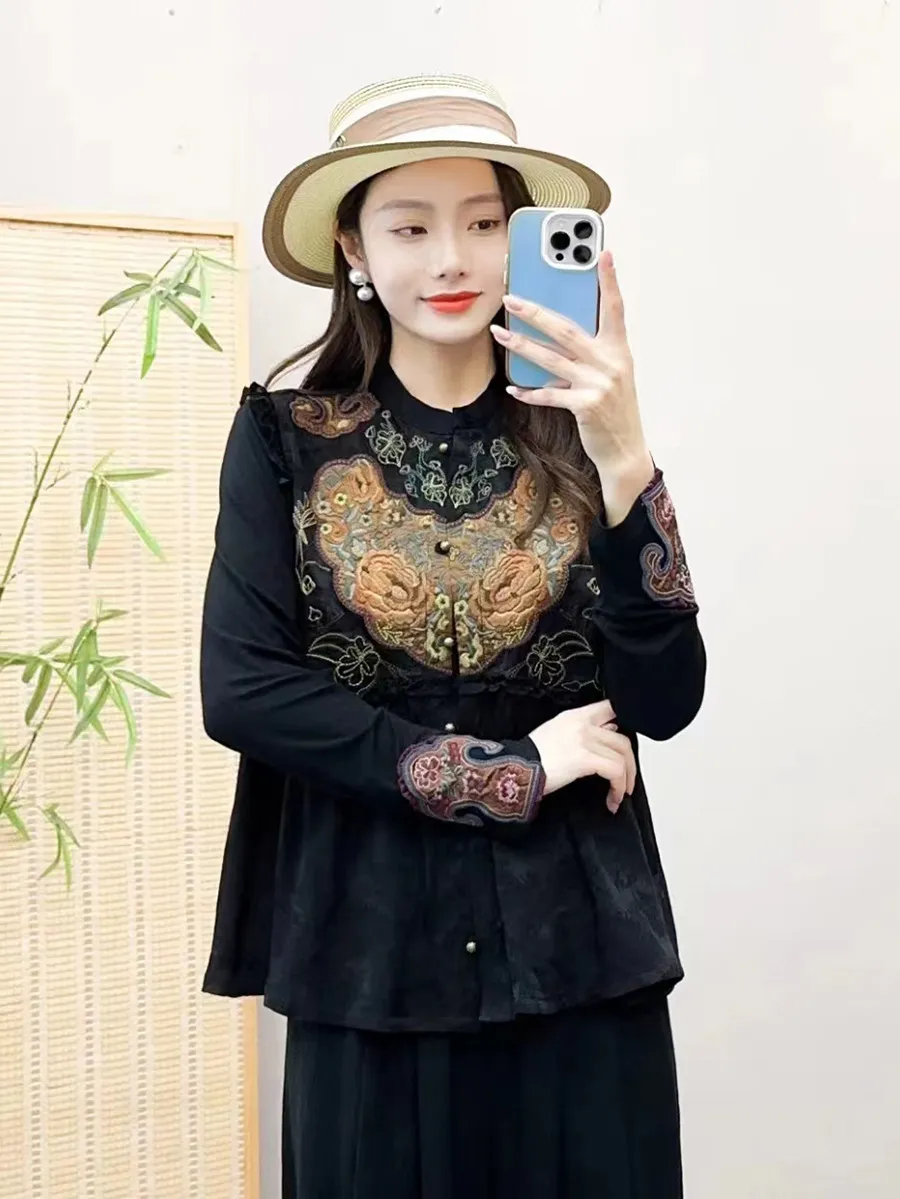 衣都精品- 2023新款民族風七分袖刺繡打底衫上衣