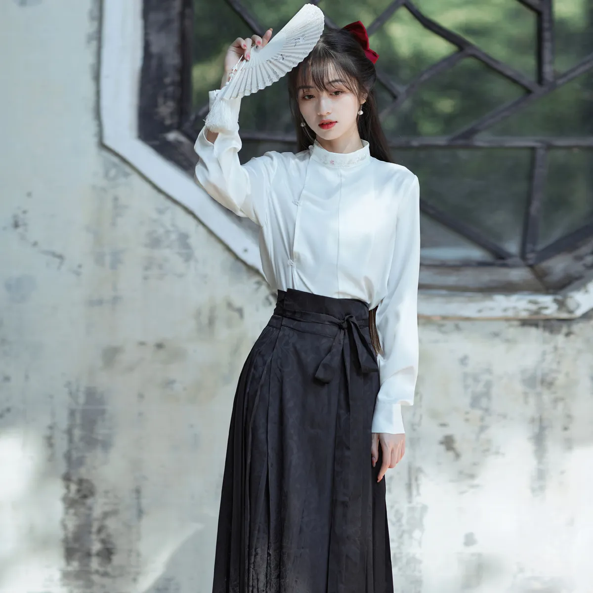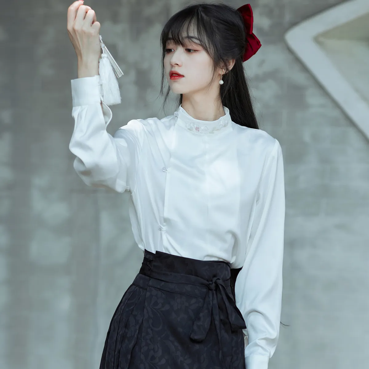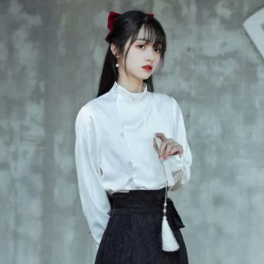 衣都精品- 2023新款復古漢服改良白色刺繡長袖立領上衣