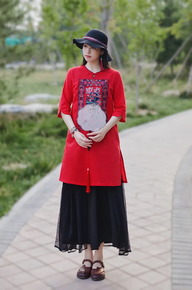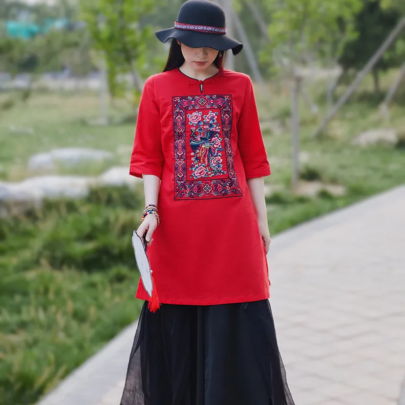 衣都精品- 2023新款民族風繡花大碼長版襯衫上衣