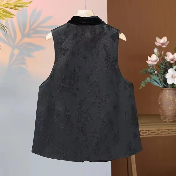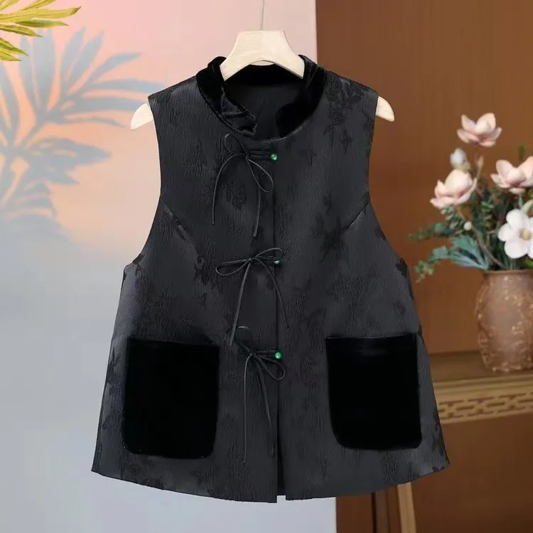 衣都精品- 2023新款民族風緞面大碼坎肩盤扣馬甲