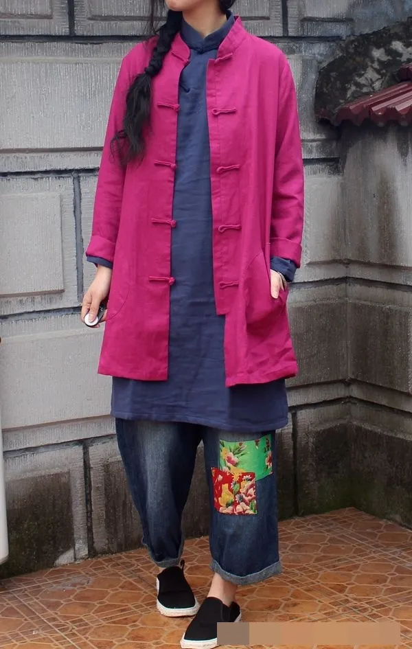 衣都精品- 2023新款民族風復古立領盤扣開襟外套