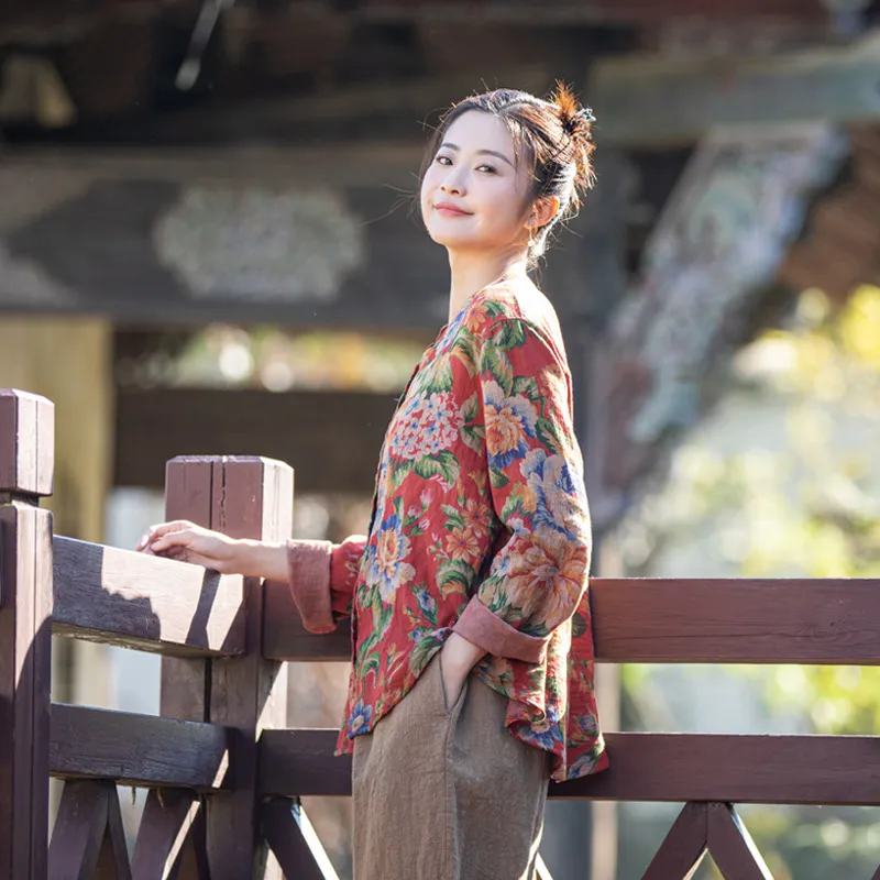 衣都精品- 2023新款民族風復古立領盤扣開襟外套
