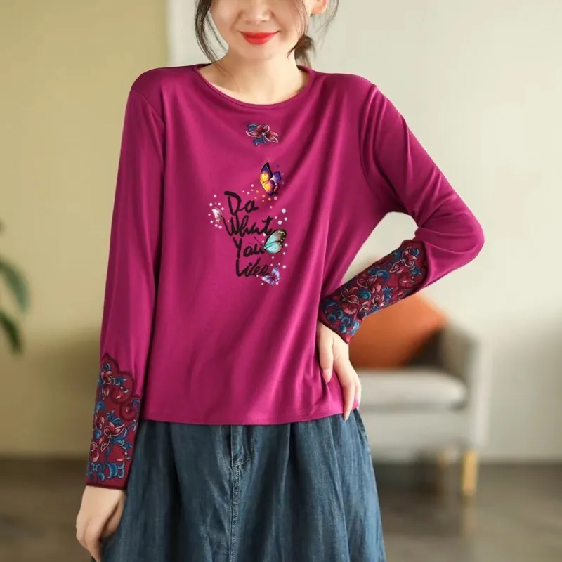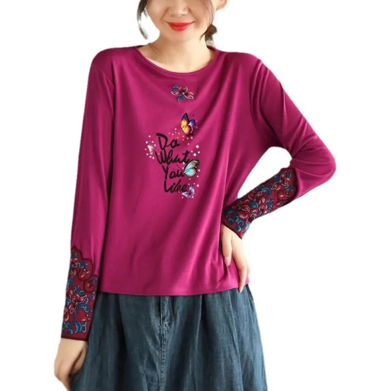 衣都精品- 2023新款民族風圓領刺繡百搭顯瘦內搭上衣
