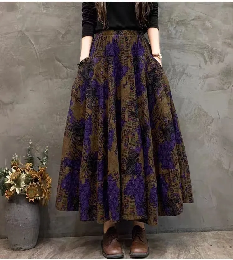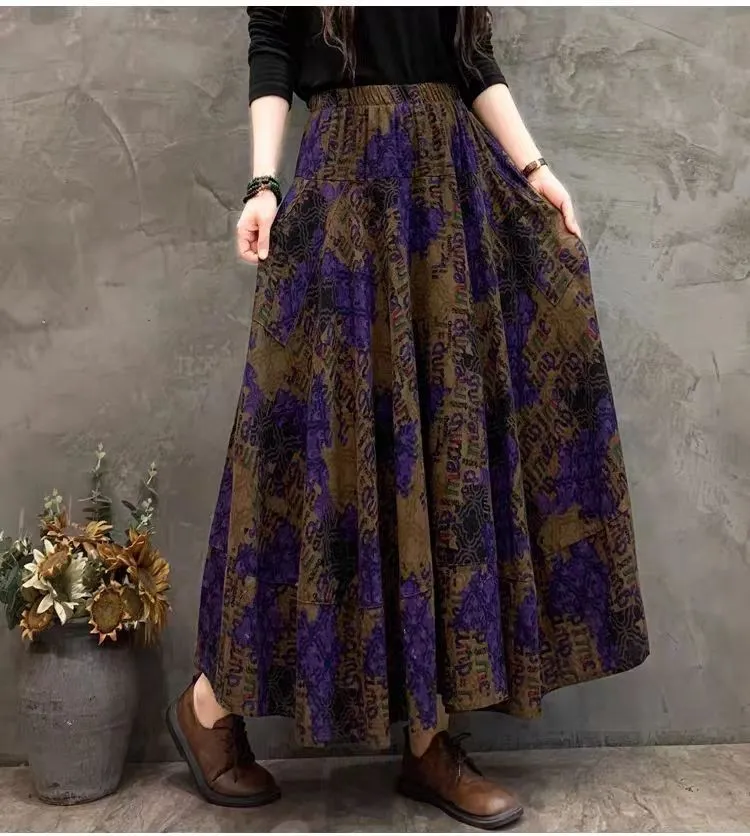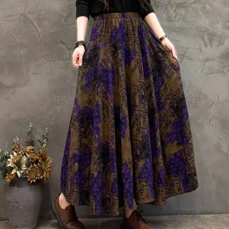 衣都精品- 2023新款民族風百搭顯瘦大擺鬆緊腰棉麻半身裙