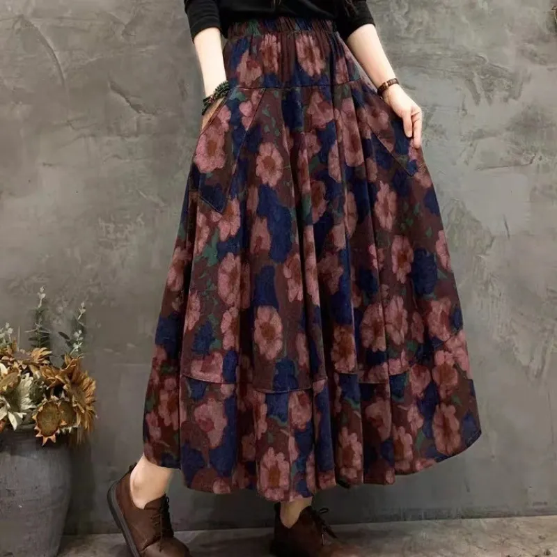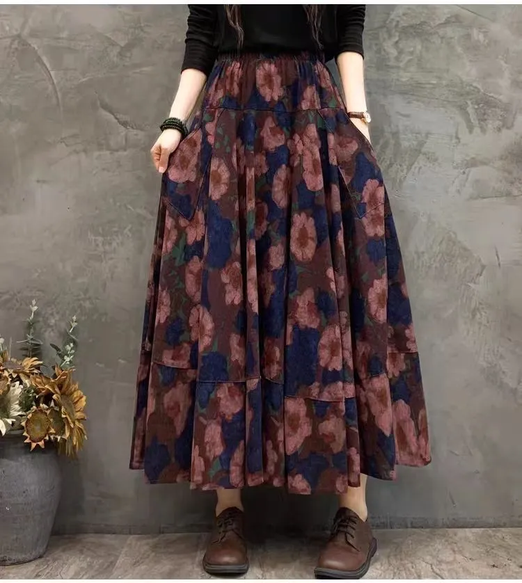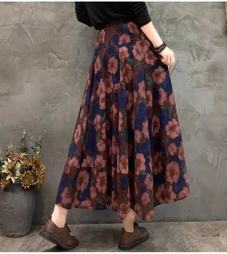 衣都精品- 2023新款民族風百搭顯瘦大擺鬆緊腰棉麻半身裙