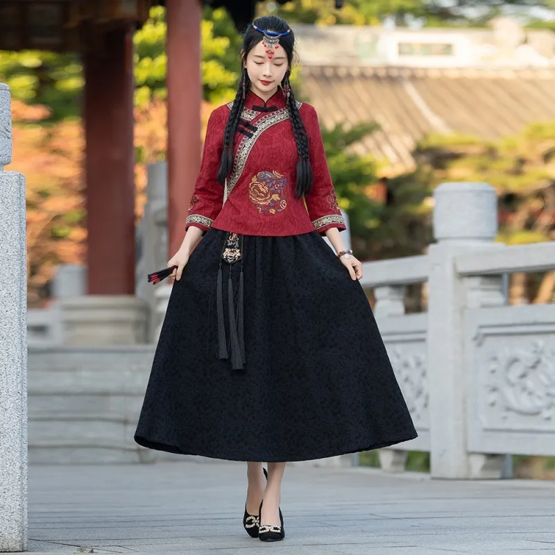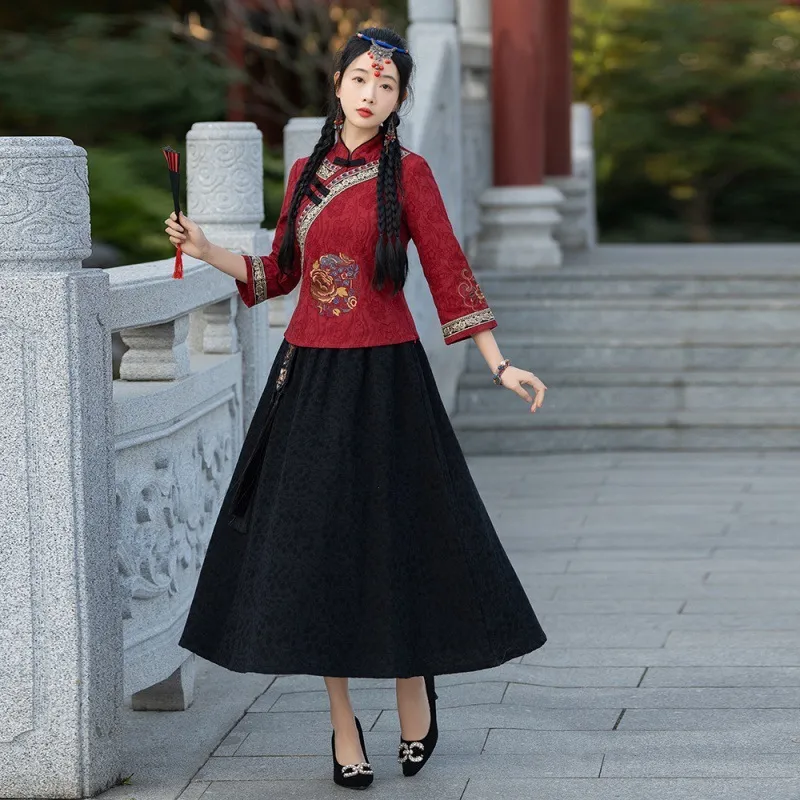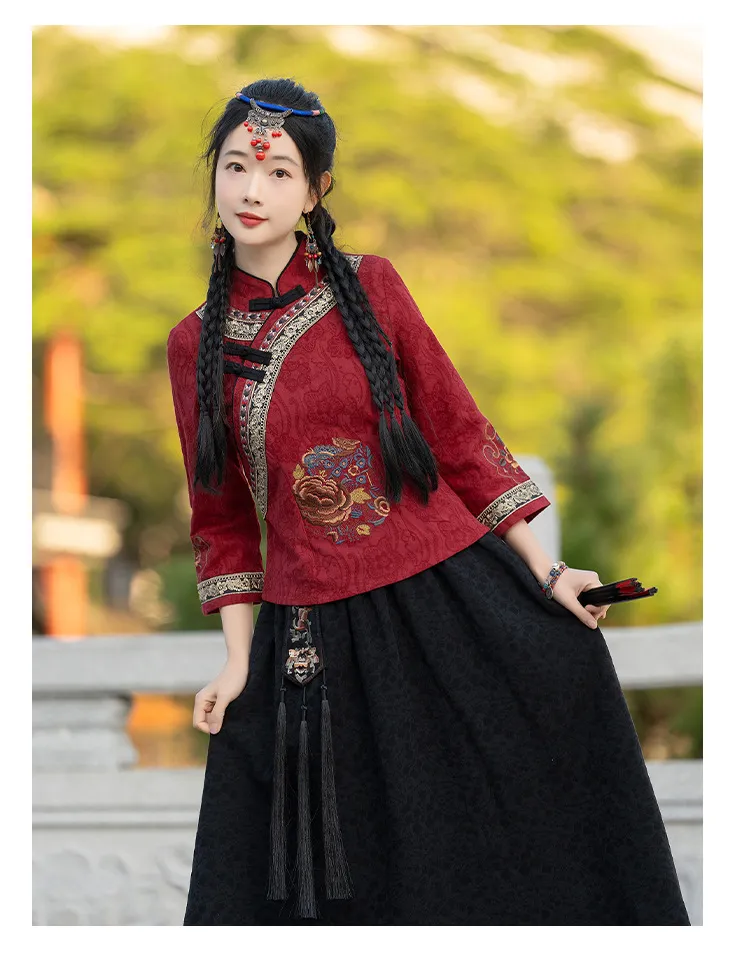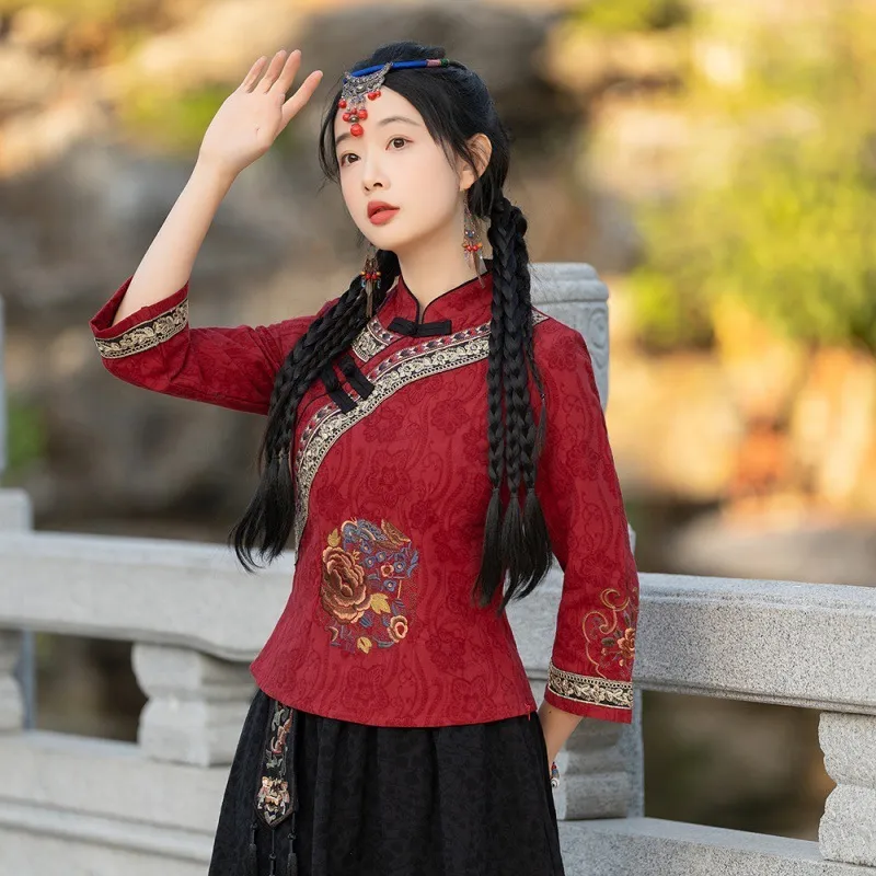 衣都精品- 2023新款民族風盤扣提花刺繡上衣
