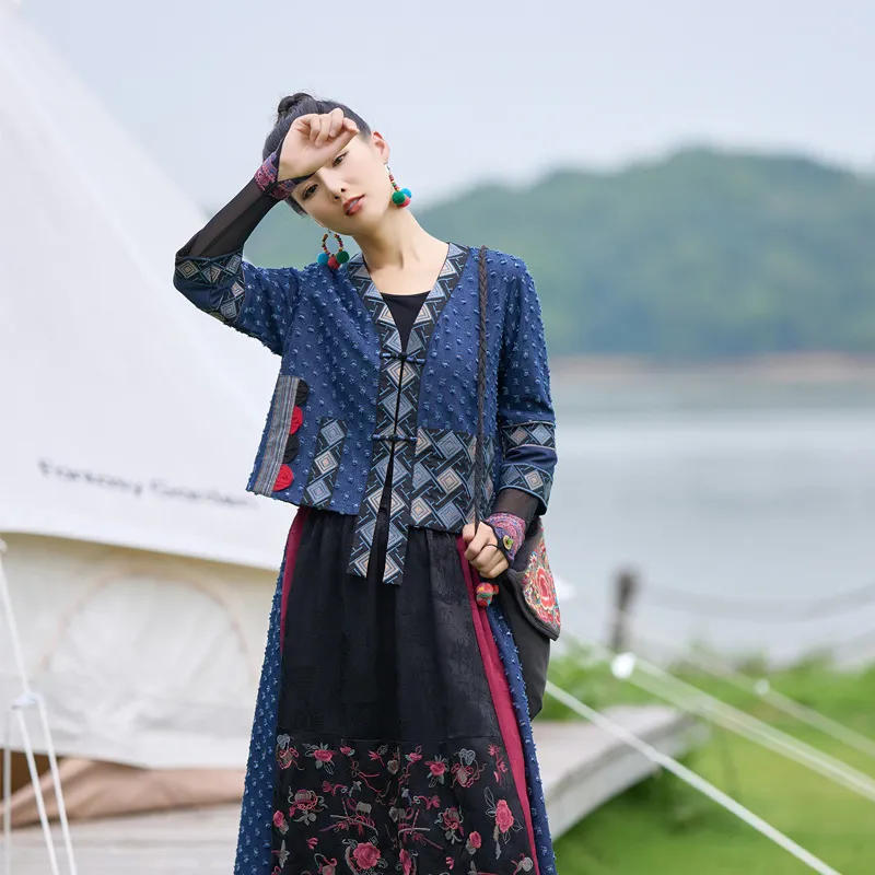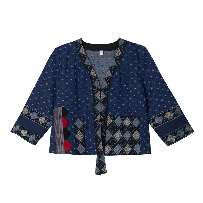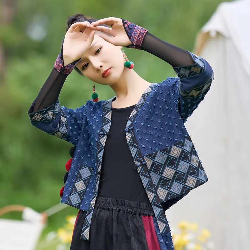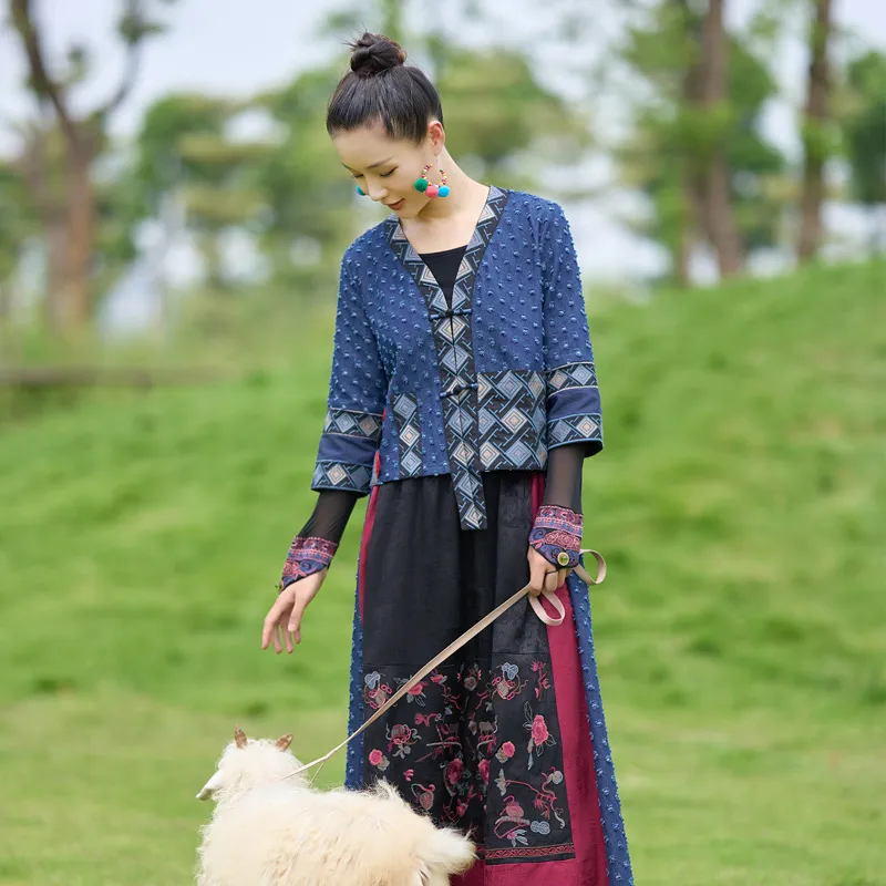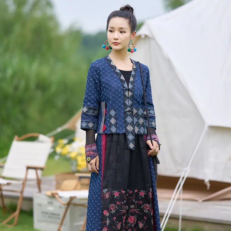 衣都精品- 2023新款民族風重工貼布老繡提花盤扣外套