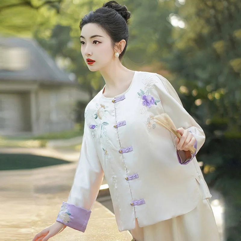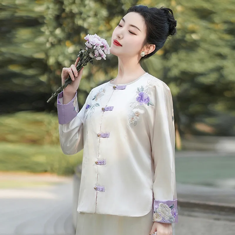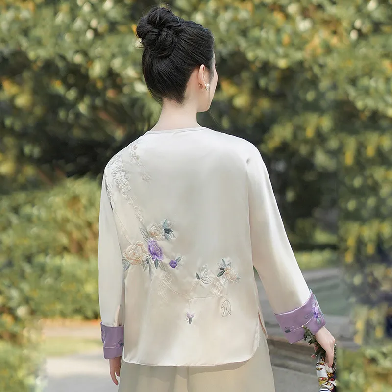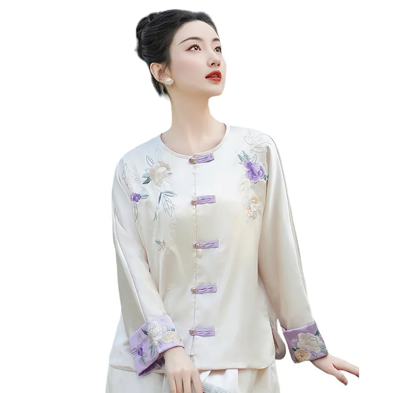 衣都精品- 2023新款民族風盤扣提花刺繡上衣