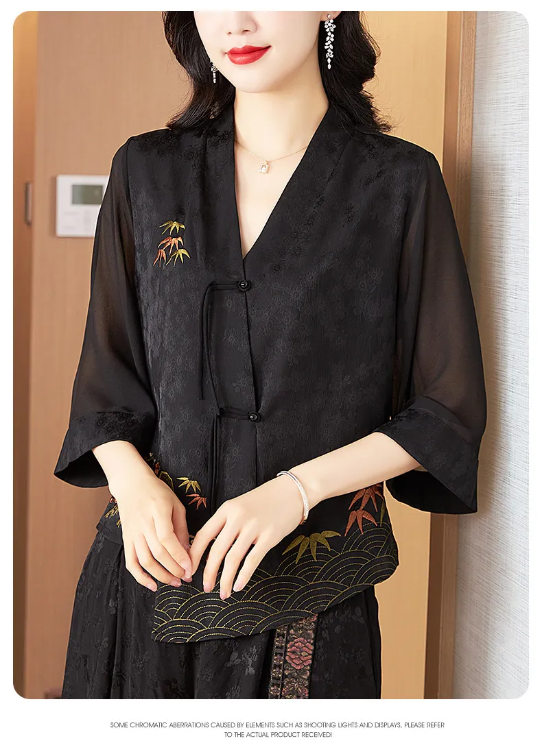 衣都精品- 2023新款民族風提花刺繡盤扣不規則七分袖外套