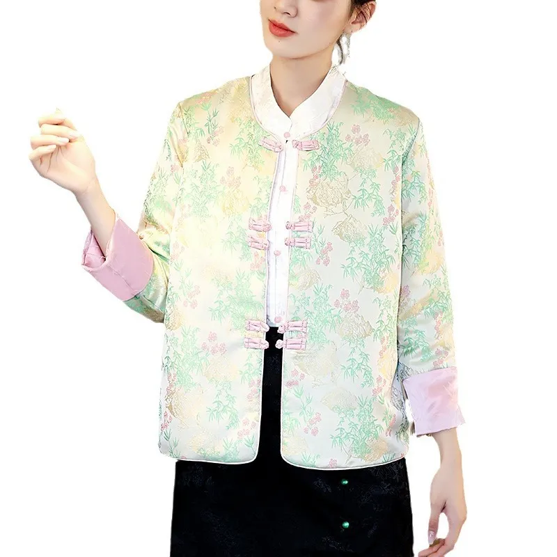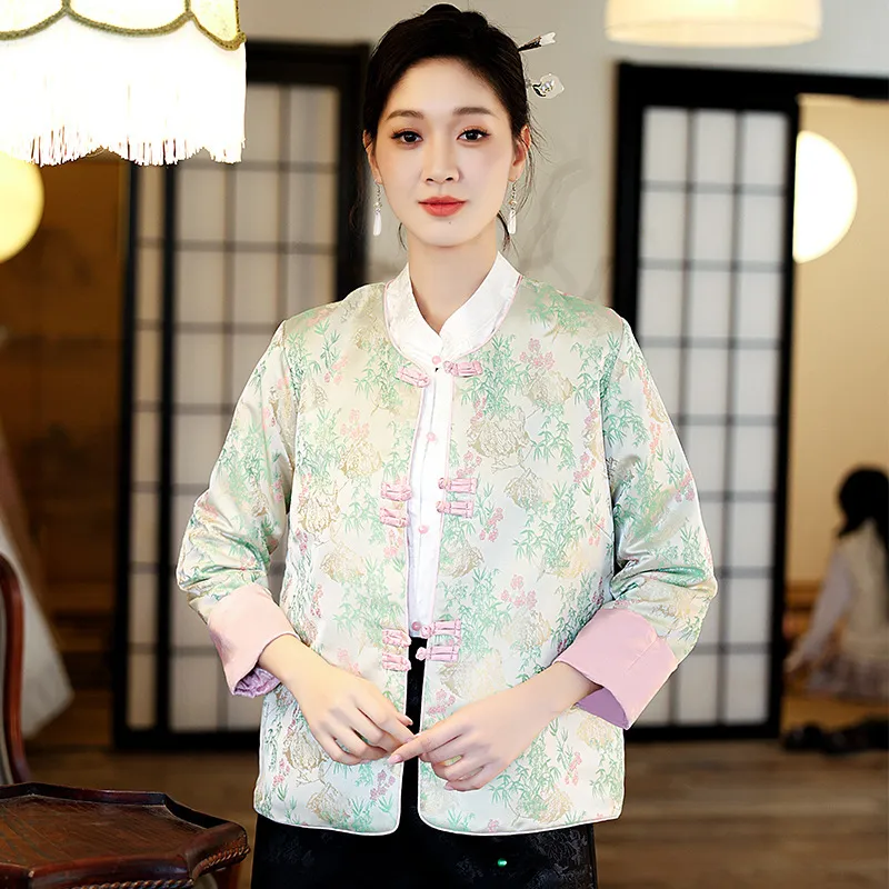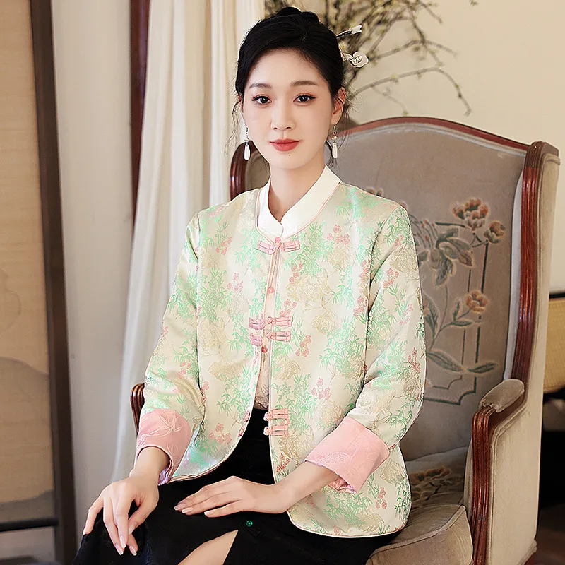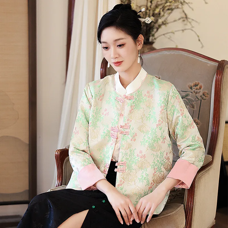衣都精品- 2023新款中式宋錦提花緞面刺繡盤扣外套