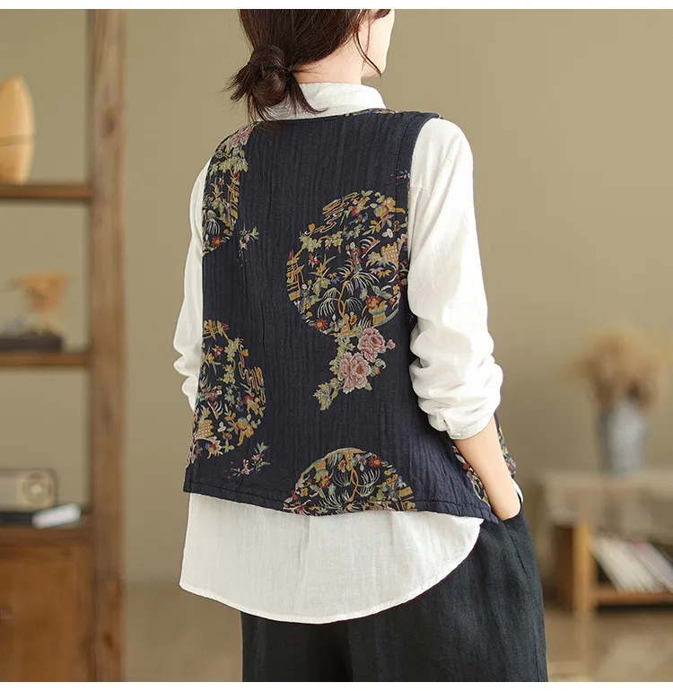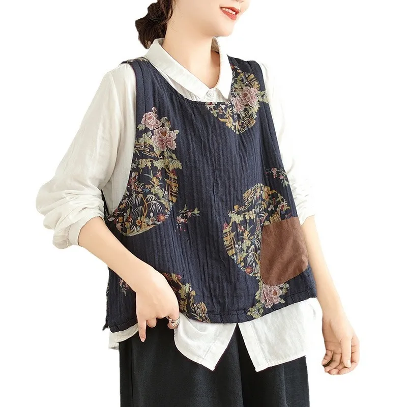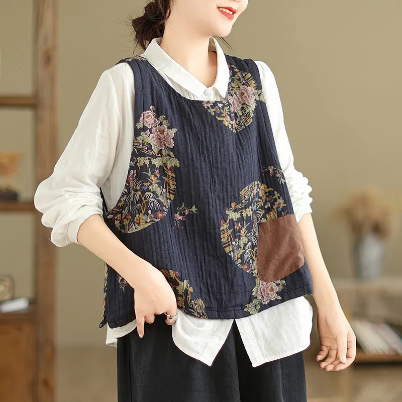 衣都精品- 2023新款復古文藝印花套頭馬甲外套