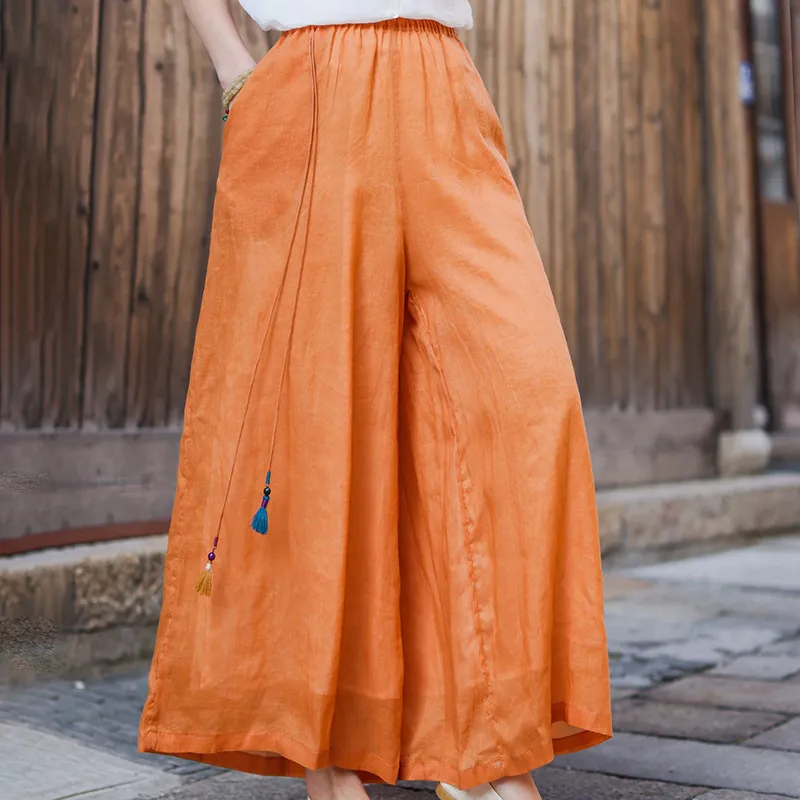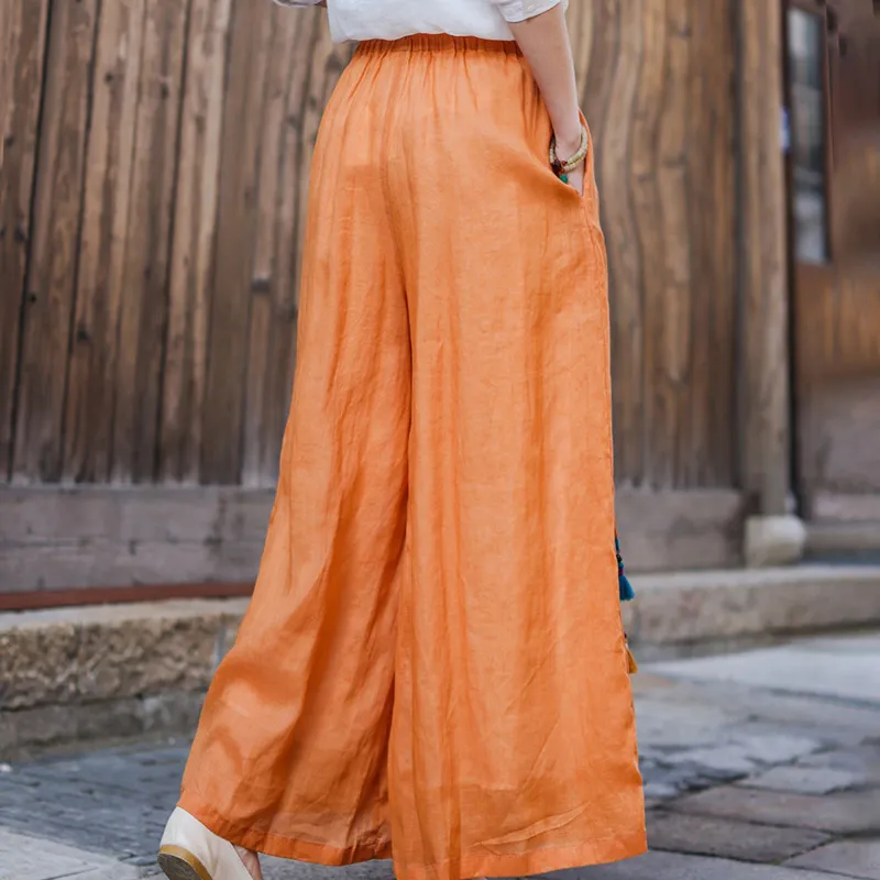 衣都精品- 2023新款民族風純色流蘇鬆緊腰雙層寬腿褲