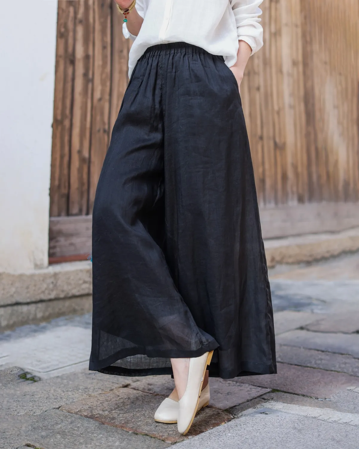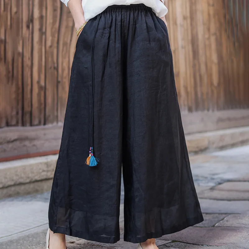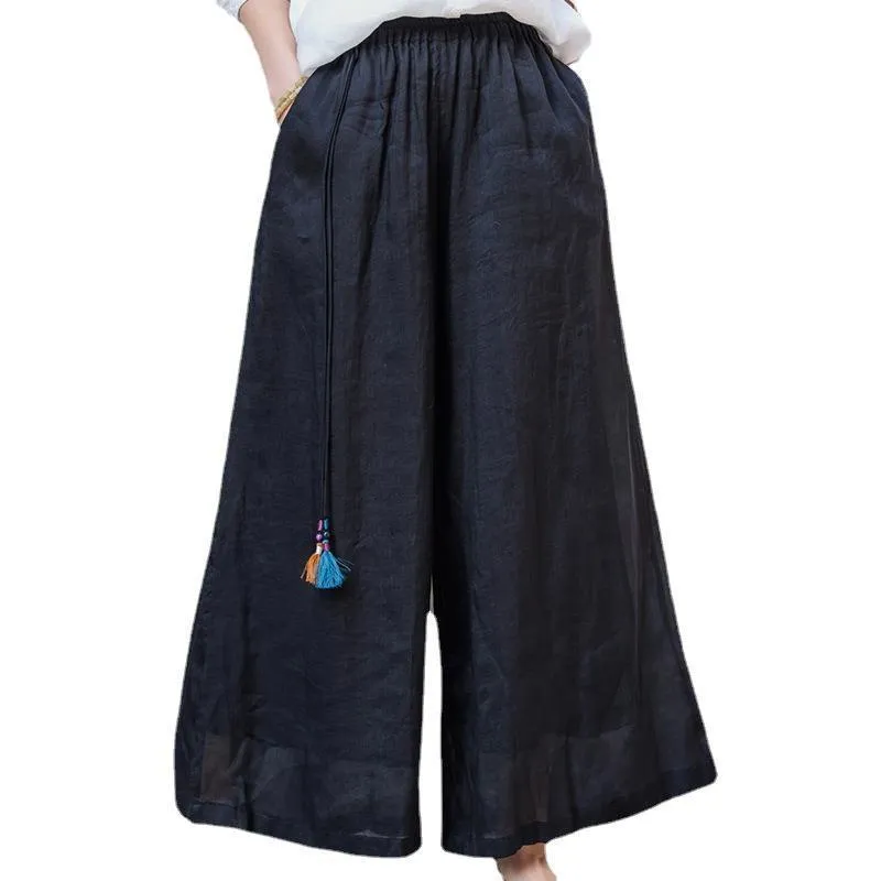 衣都精品- 2023新款民族風純色流蘇鬆緊腰雙層寬腿褲