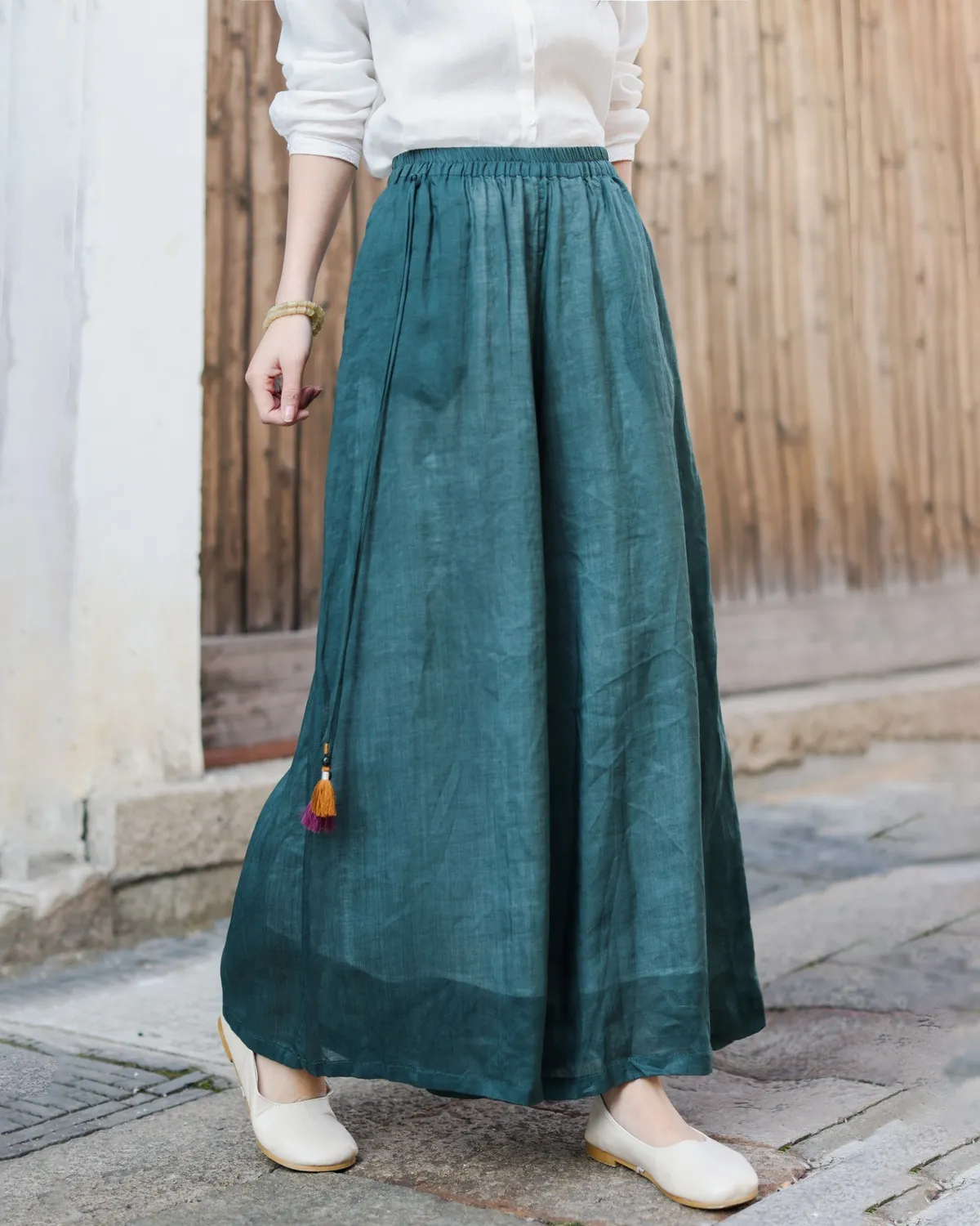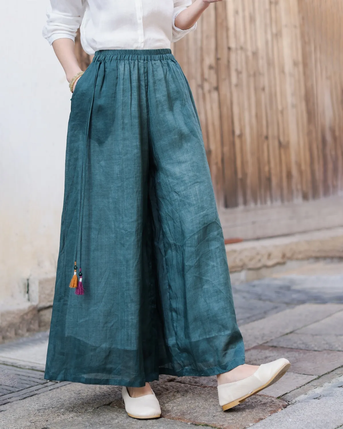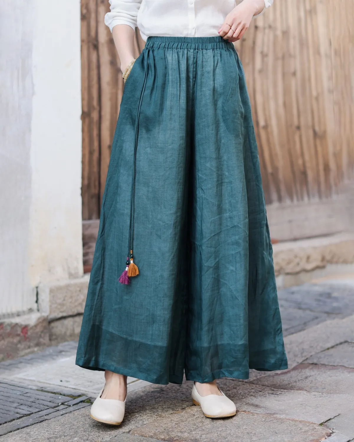 衣都精品- 2023新款民族風純色流蘇鬆緊腰雙層寬腿褲