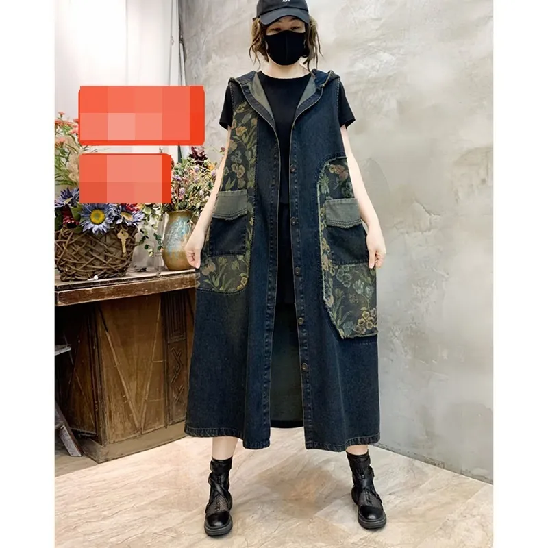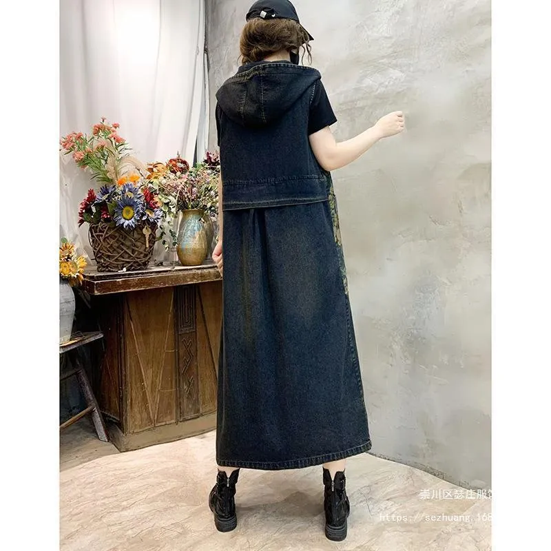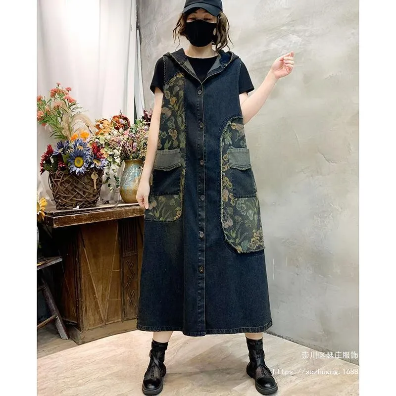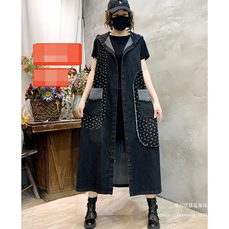 衣都精品- 2023新款連帽單排扣牛仔馬甲背心裙