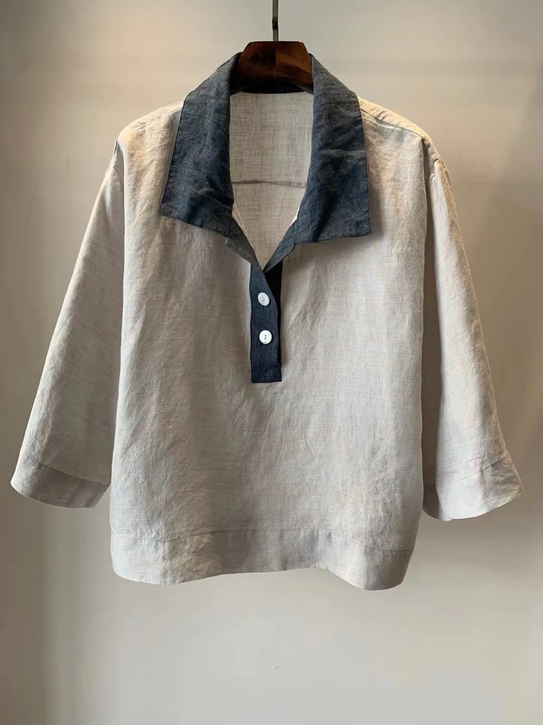 衣都精品- 2023新款翻領撞色套頭短款顯瘦休閒上衣