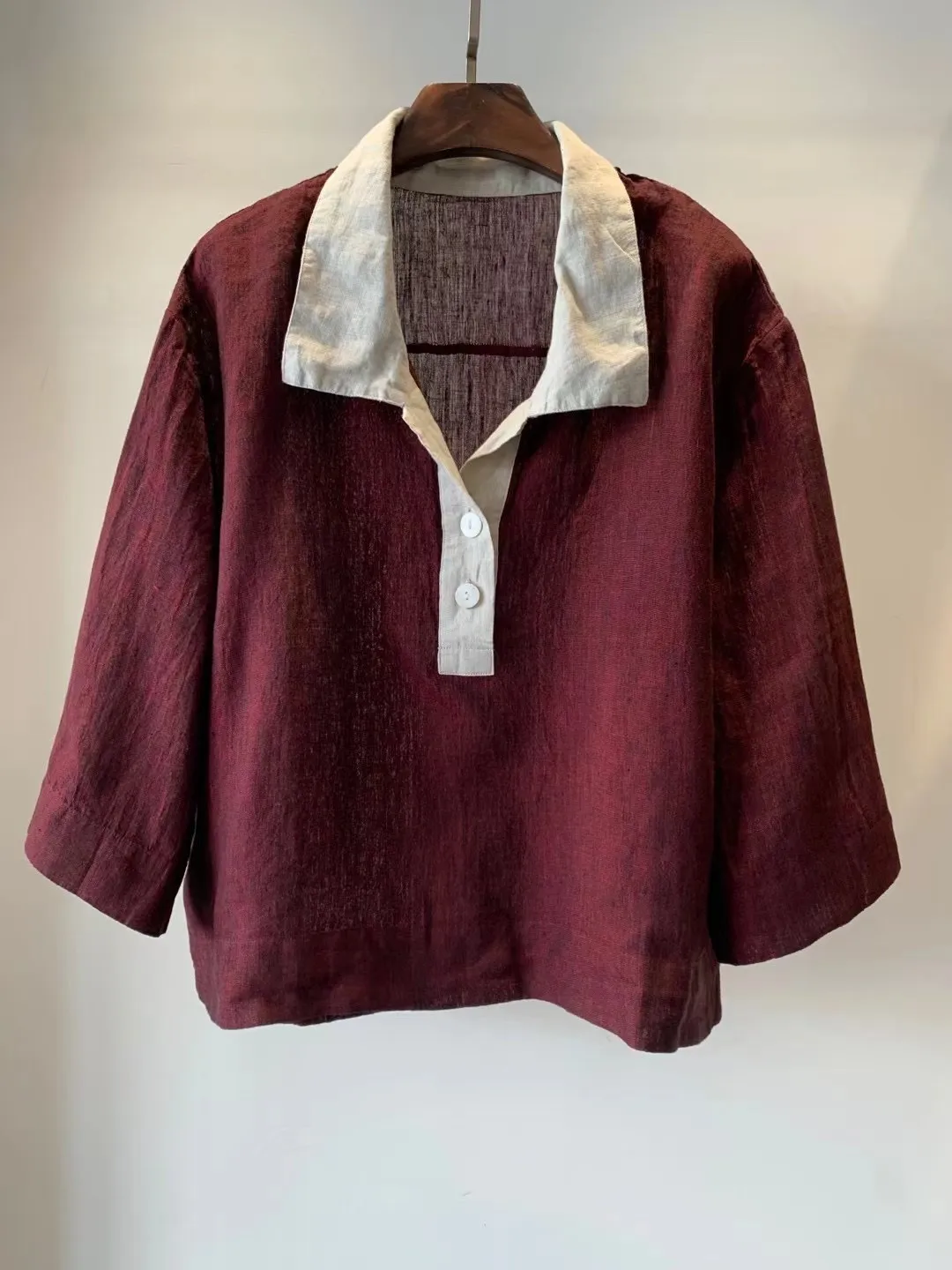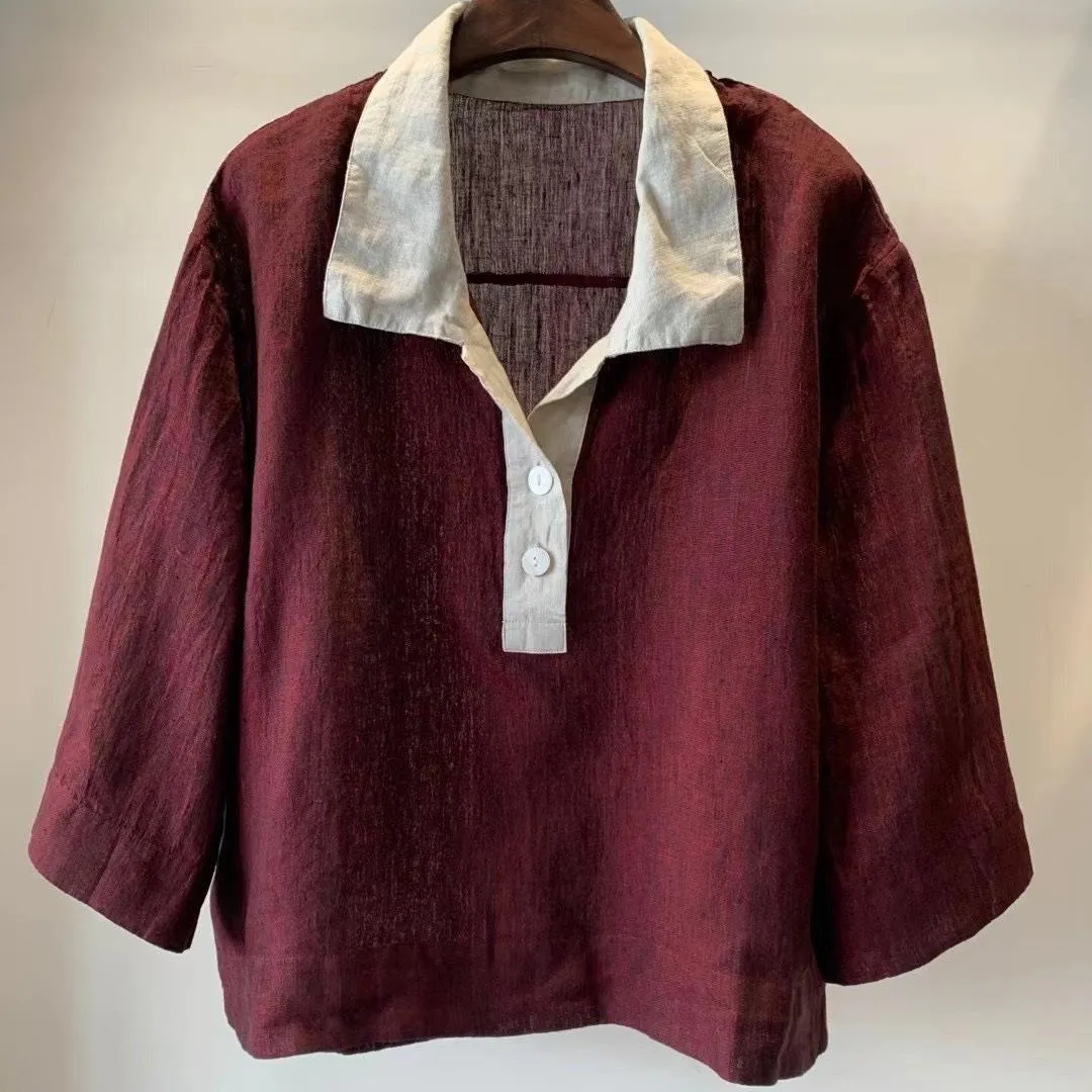 衣都精品- 2023新款翻領撞色套頭短款顯瘦休閒上衣