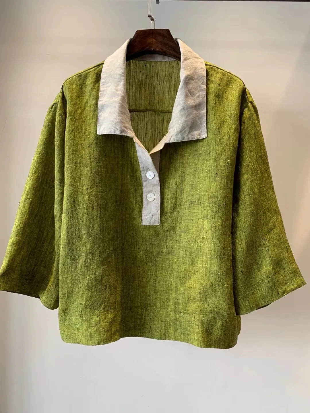 衣都精品- 2023新款翻領撞色套頭短款顯瘦休閒上衣