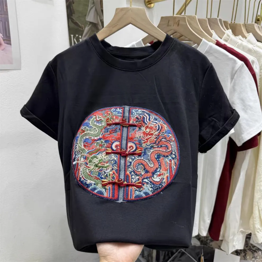 衣都精品- 2023新款中式復古刺繡短袖大碼顯瘦上衣