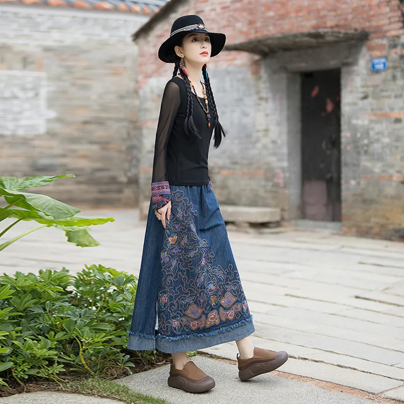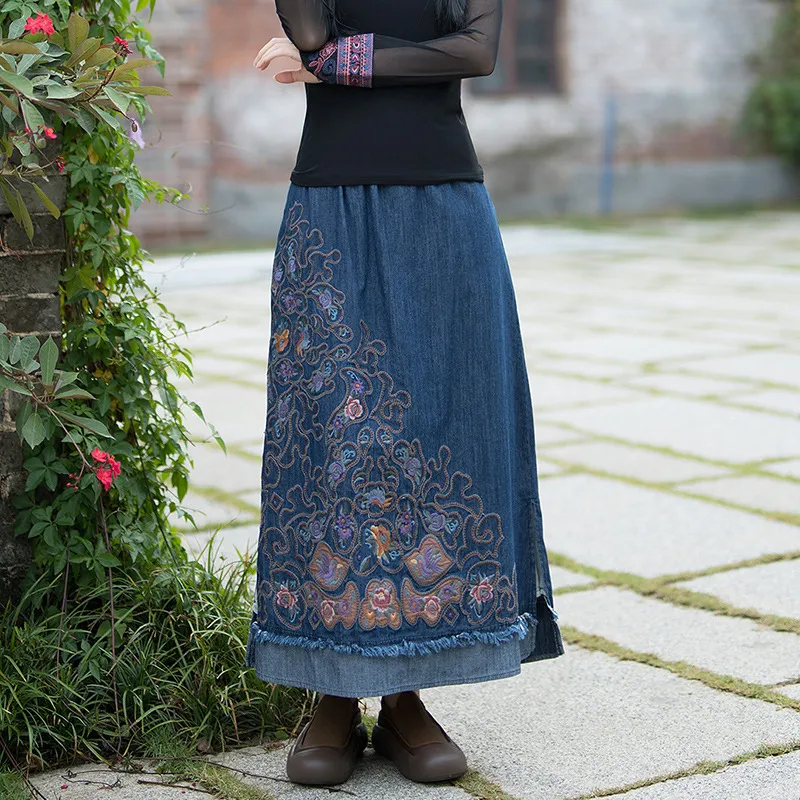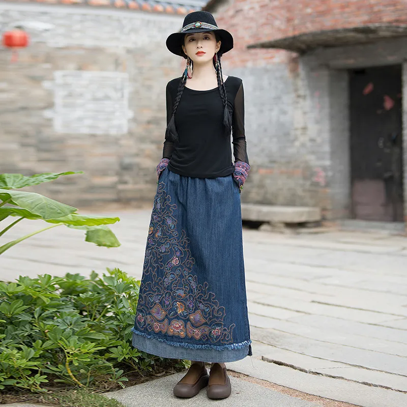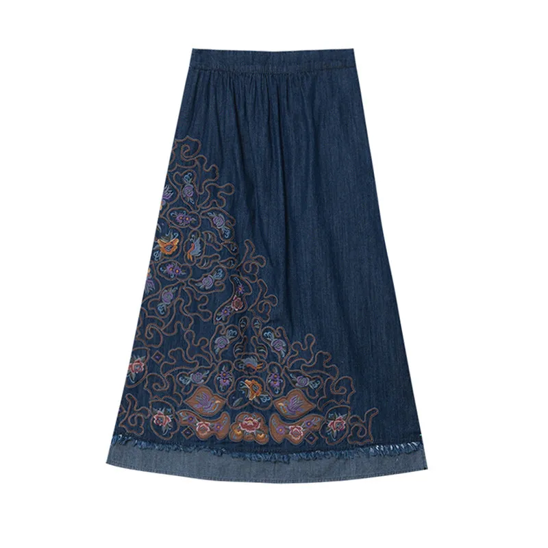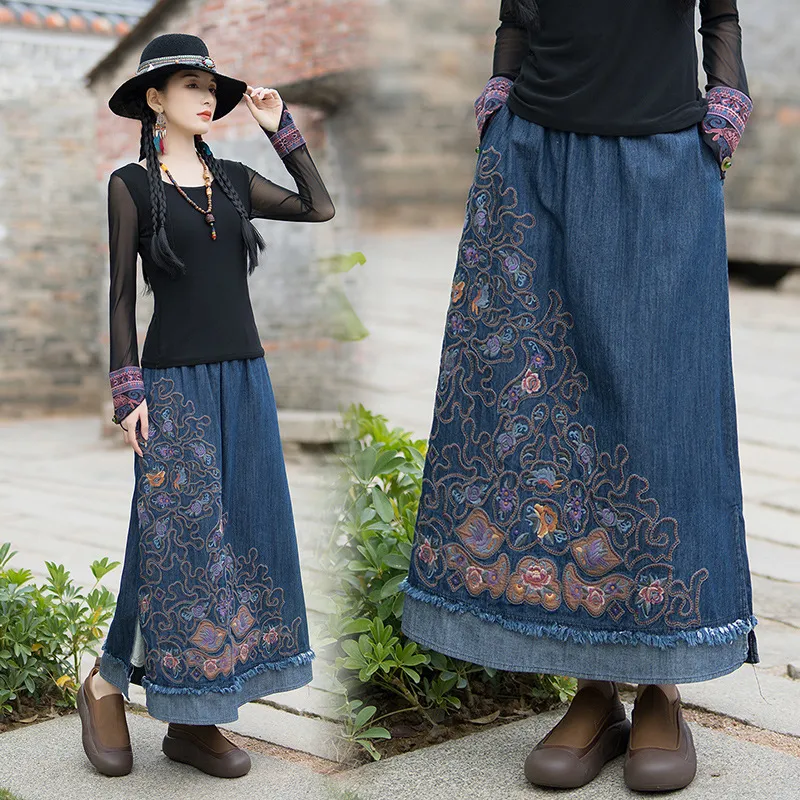 衣都精品- 2023新款復古民族風重工刺繡牛仔半身裙