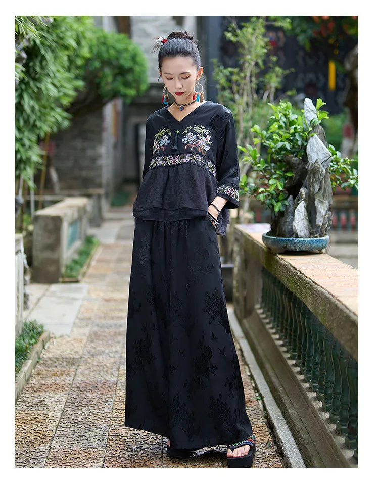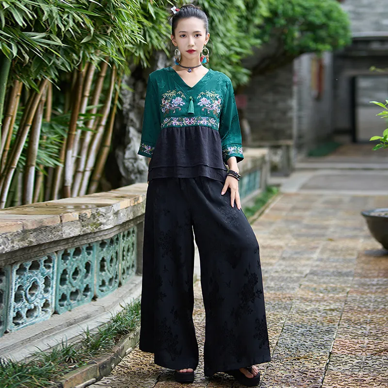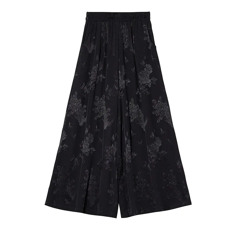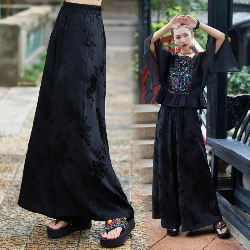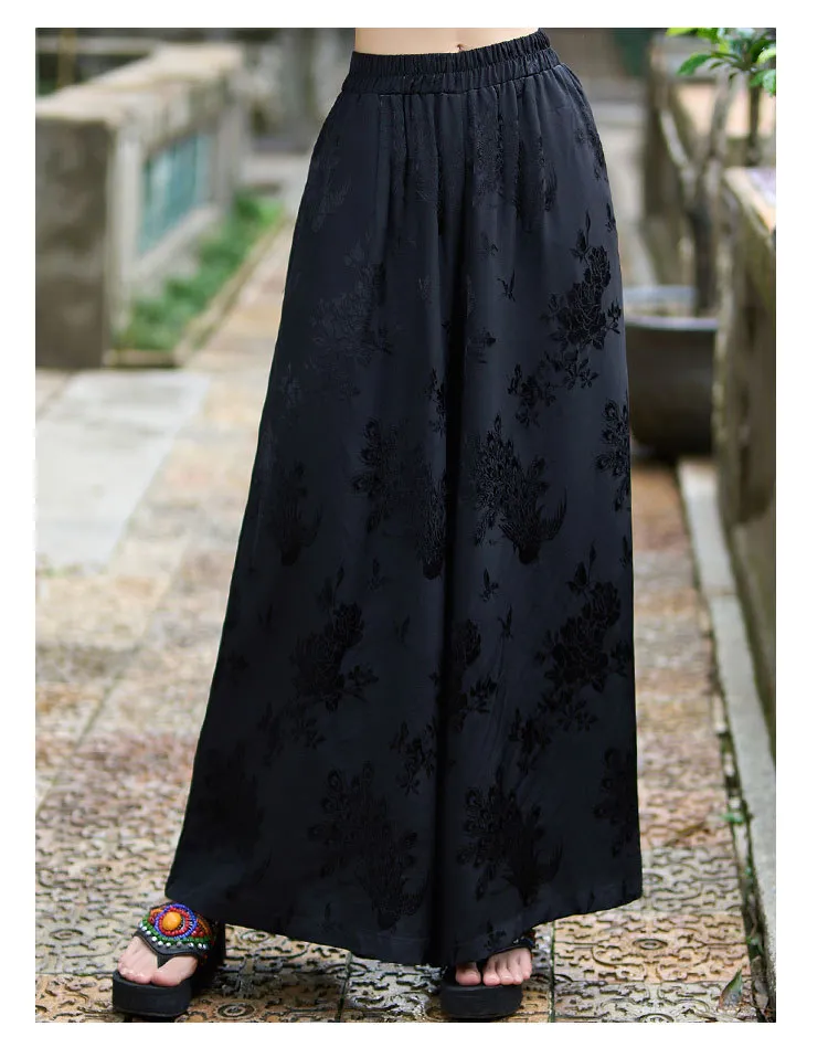 衣都精品- 2023新款民族風緞面提花寬鬆顯瘦闊腿褲