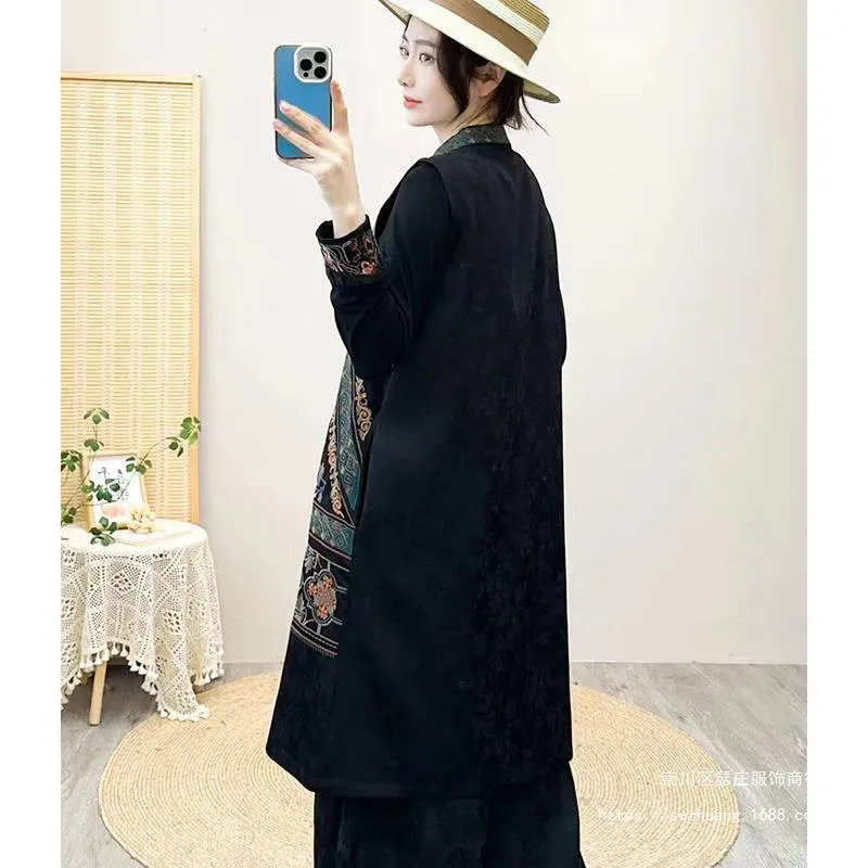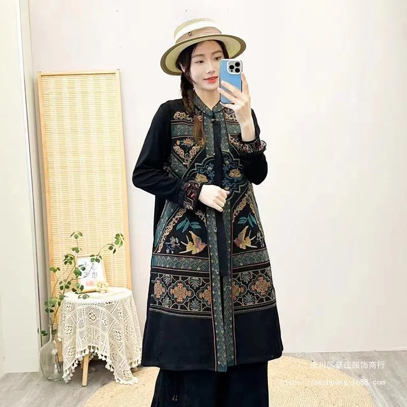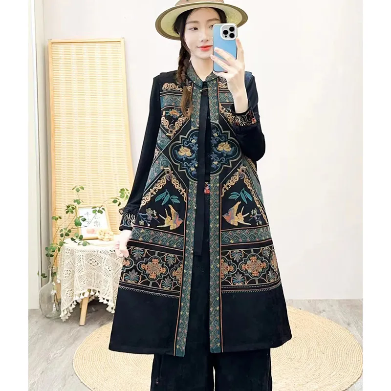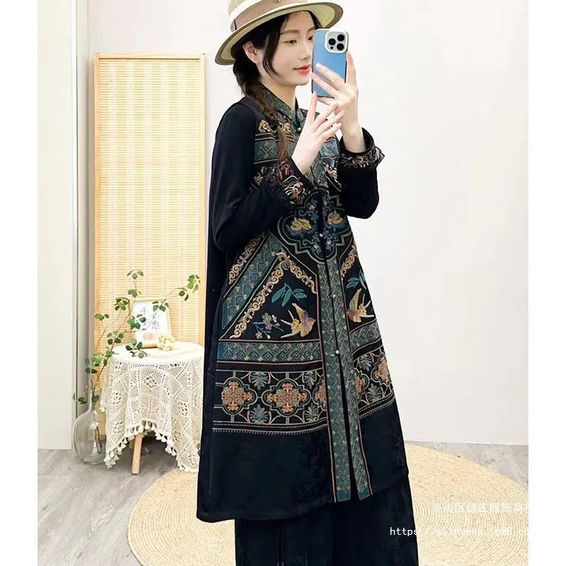 衣都精品- 2023新款民族風刺繡緞面提花盤扣馬甲外套