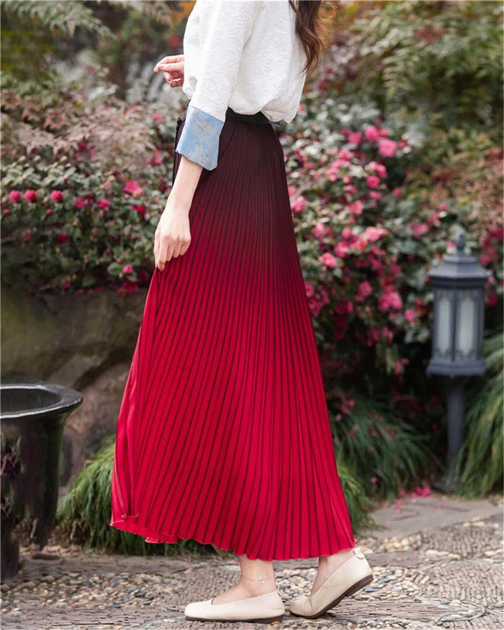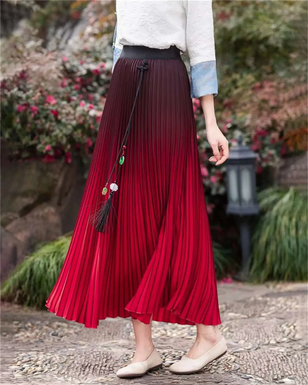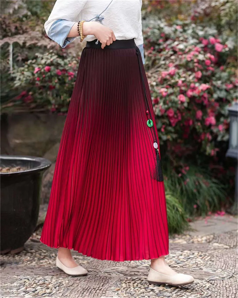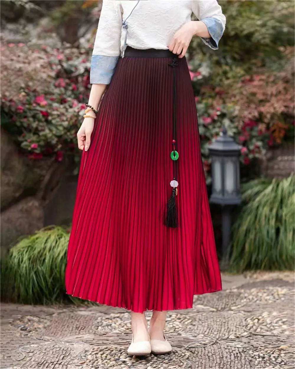 衣都精品- 2023新款民族風中式流蘇高腰漸變色半身裙