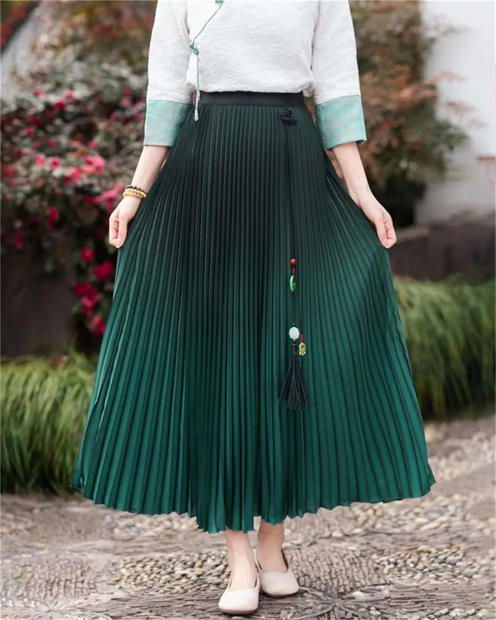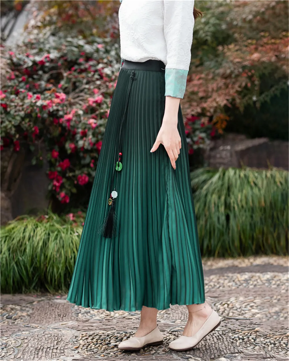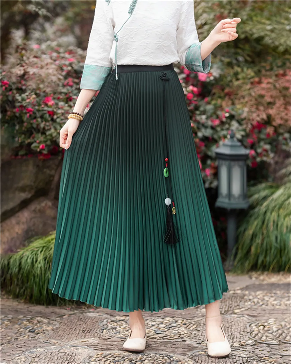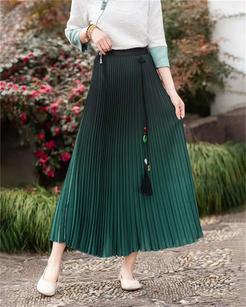 衣都精品- 2023新款民族風中式流蘇高腰漸變色半身裙