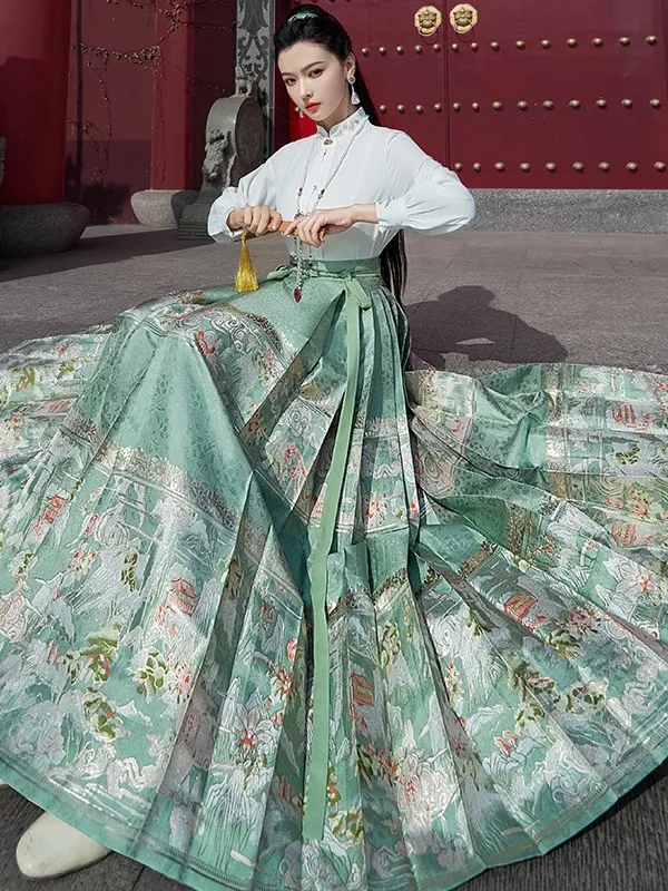衣都精品- 2023新款中式復古改良漢服天女印花馬面裙