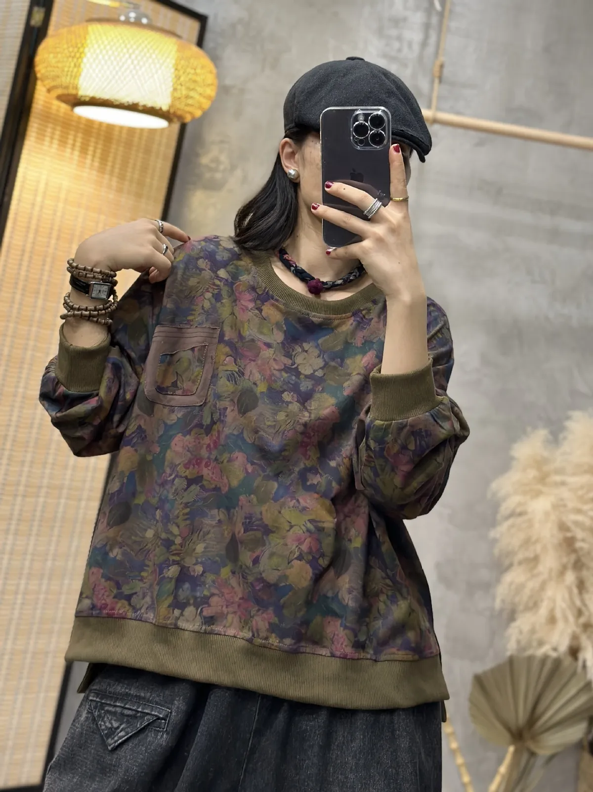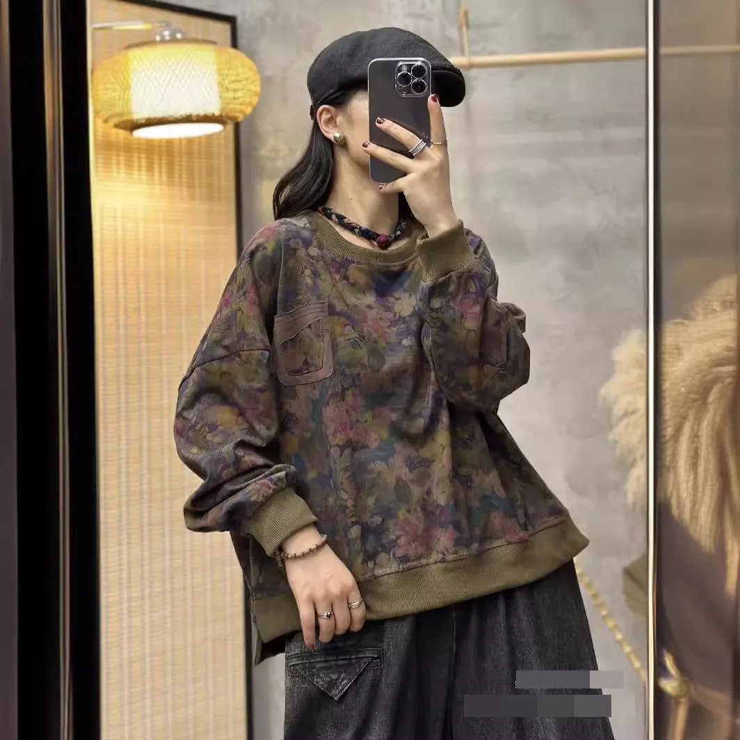 衣都精品- 2023新款減齡印花圓領套頭長袖上衣