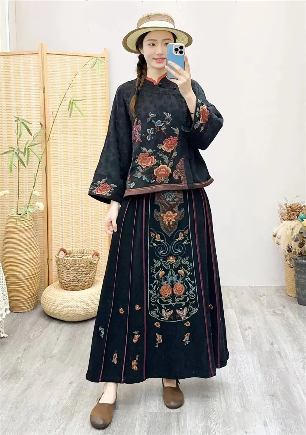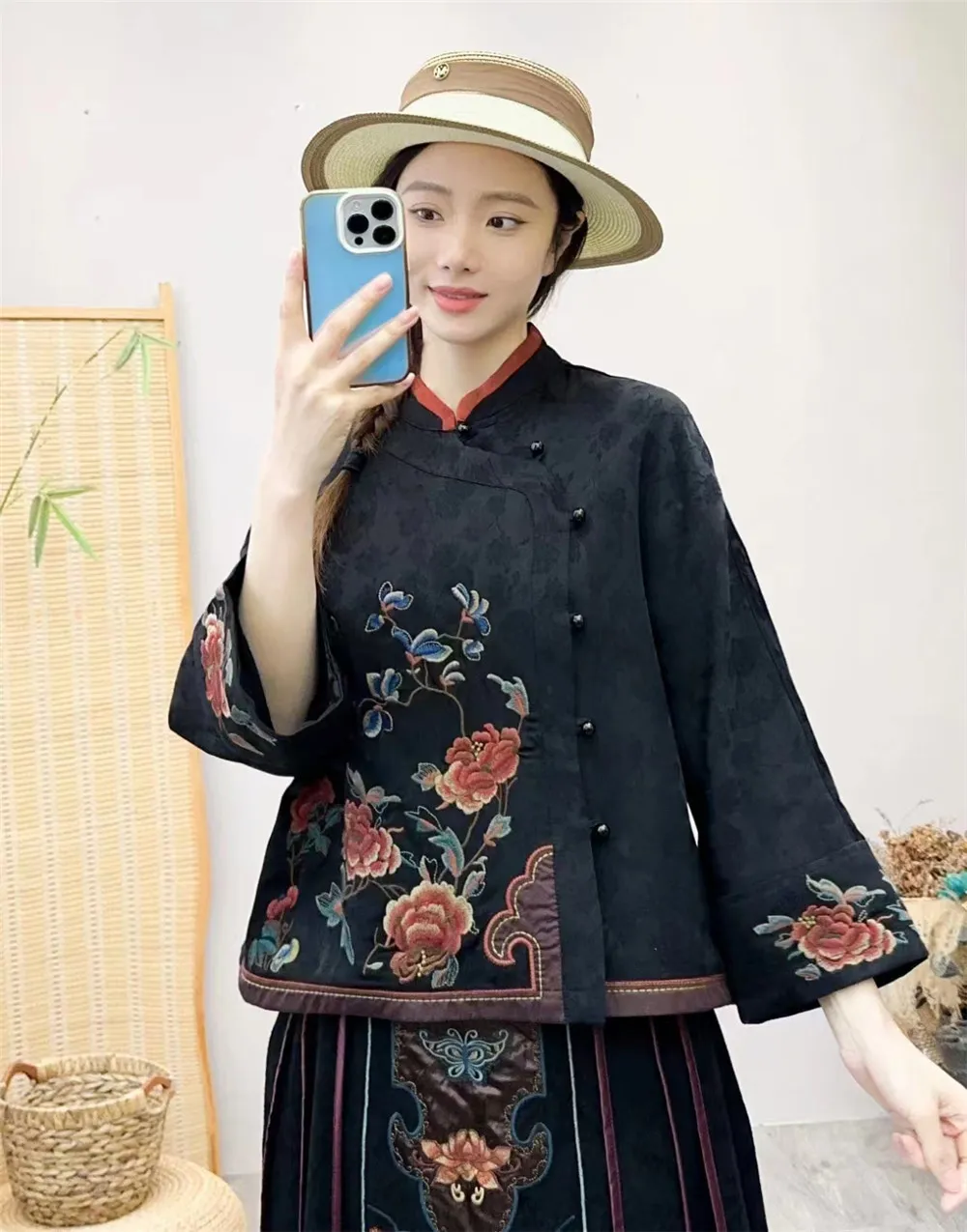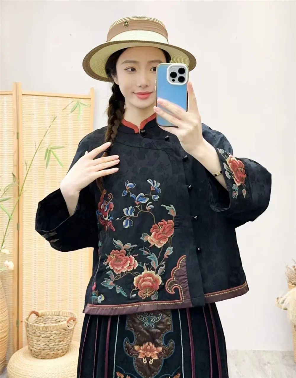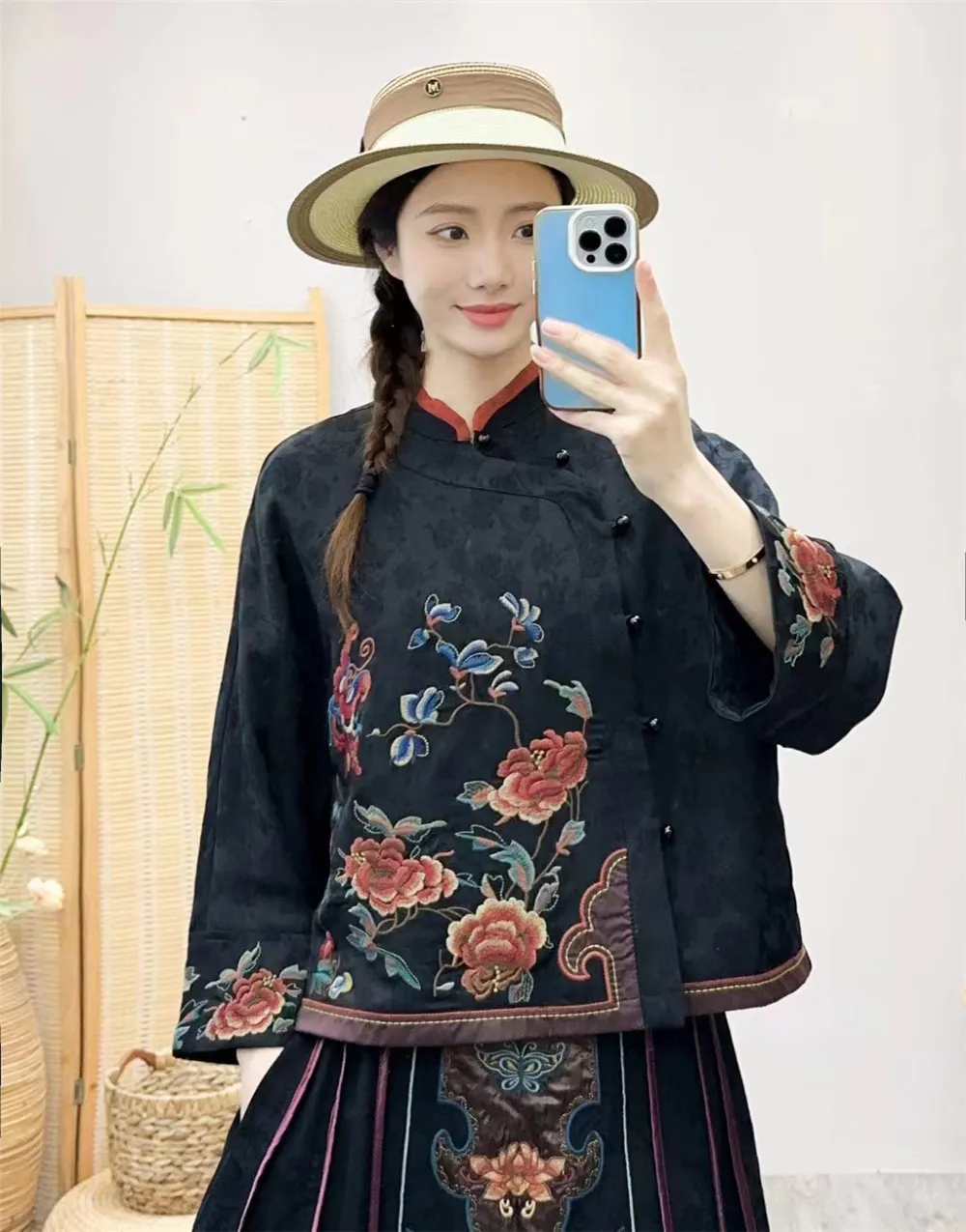 衣都精品- 2023新款民族風緞面重工刺繡開襟上衣