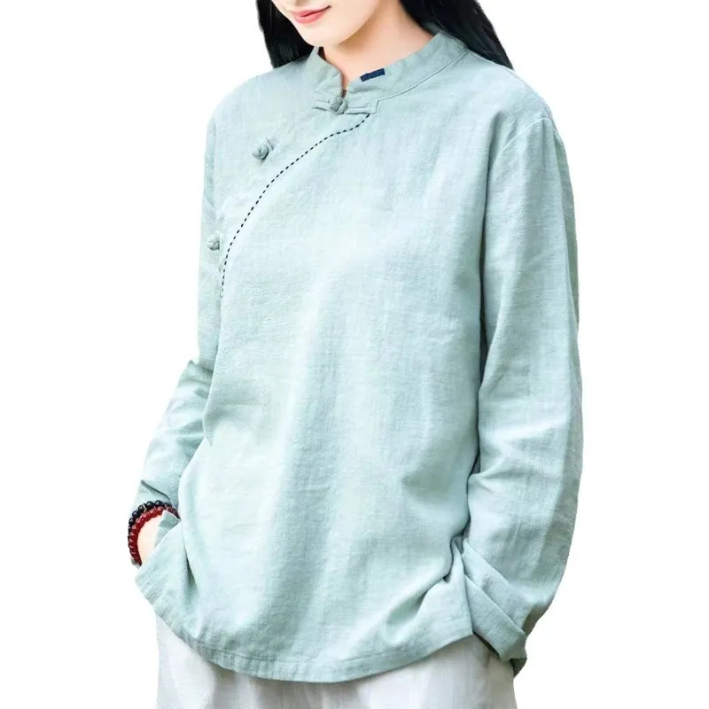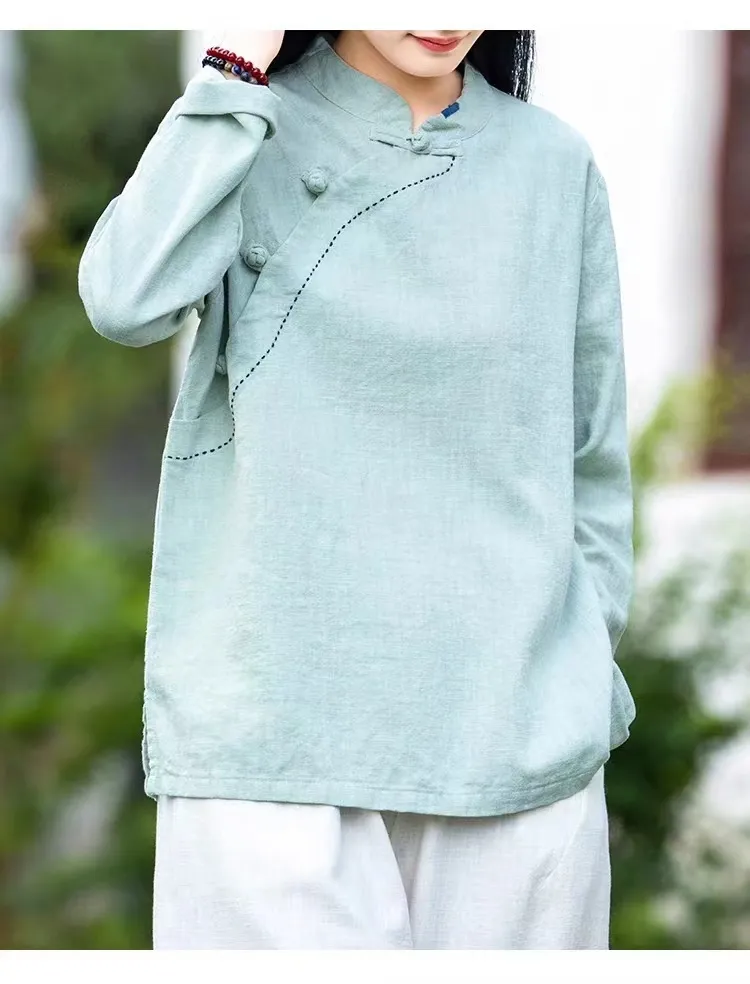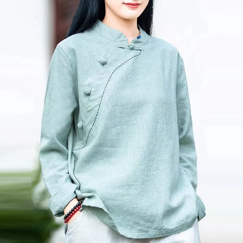 衣都精品- 2023新款民族風復古立領中式茶服盤扣上衣