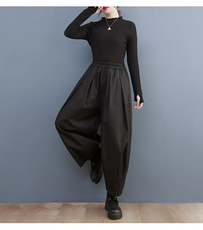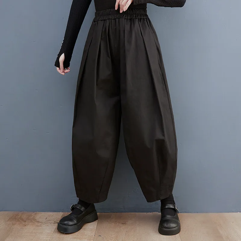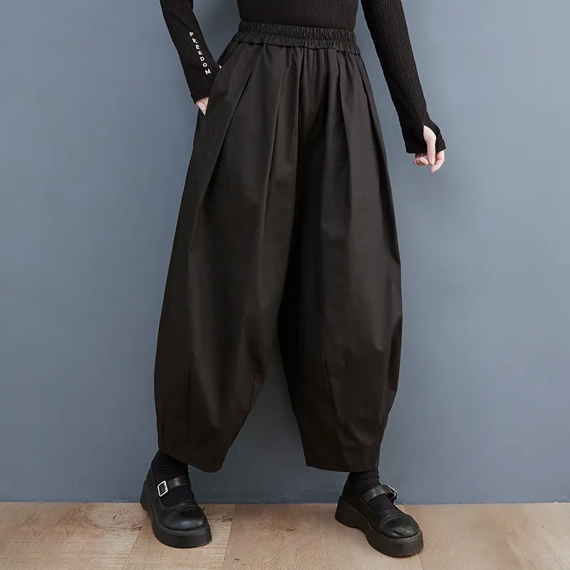 衣都精品- 2023新款文藝簡約寬鬆大碼鬆緊腰燈籠褲