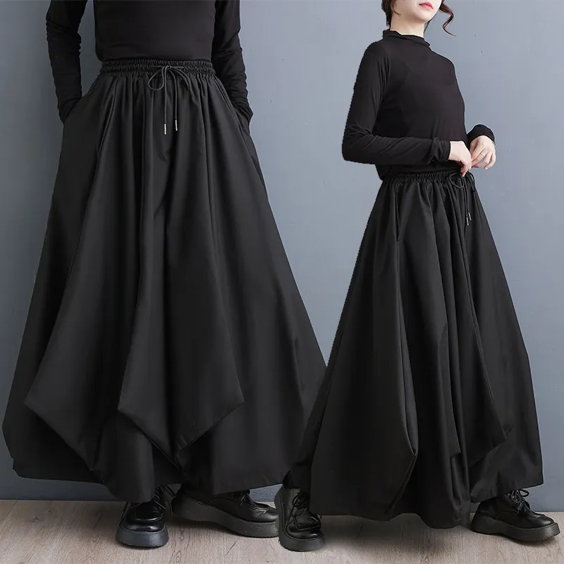 衣都精品- 2023新款暗黑風繡花拼接鬆緊腰半身裙