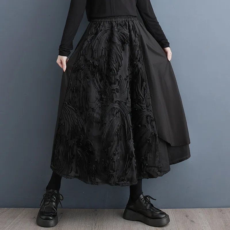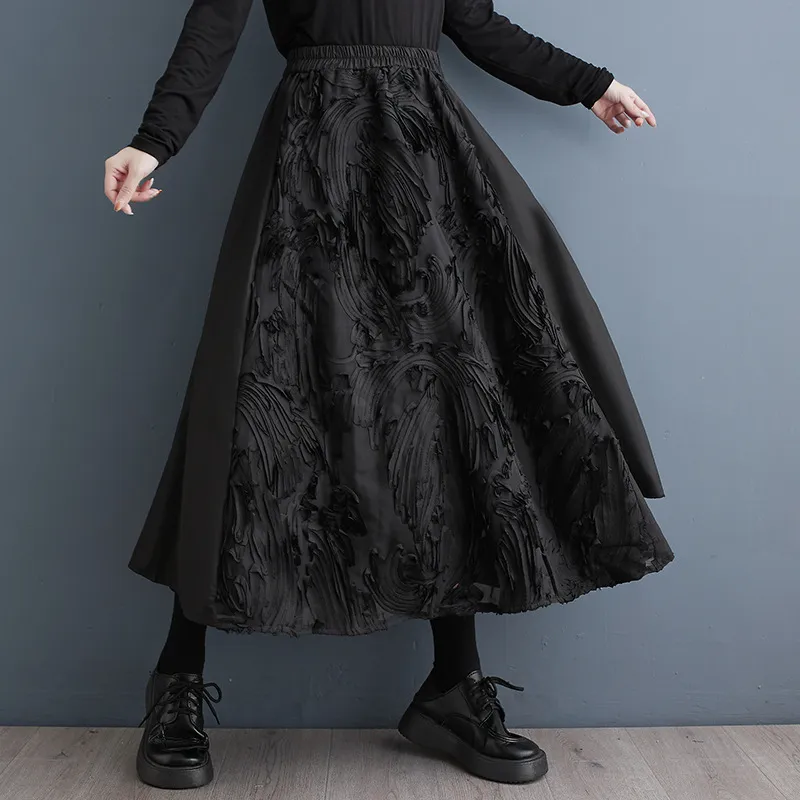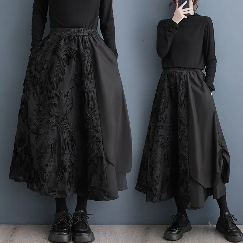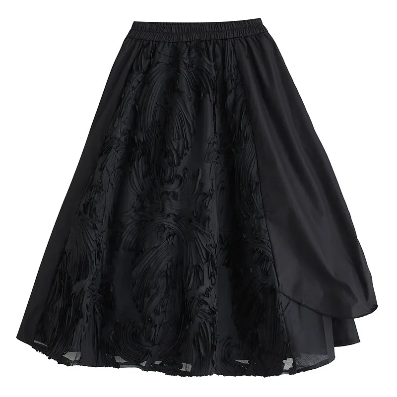 衣都精品- 2023新款暗黑風繡花拼接鬆緊腰半身裙