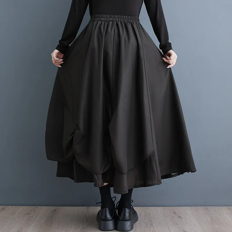 衣都精品- 2023新款立體花紋拼接褶皺不規則百搭半身裙
