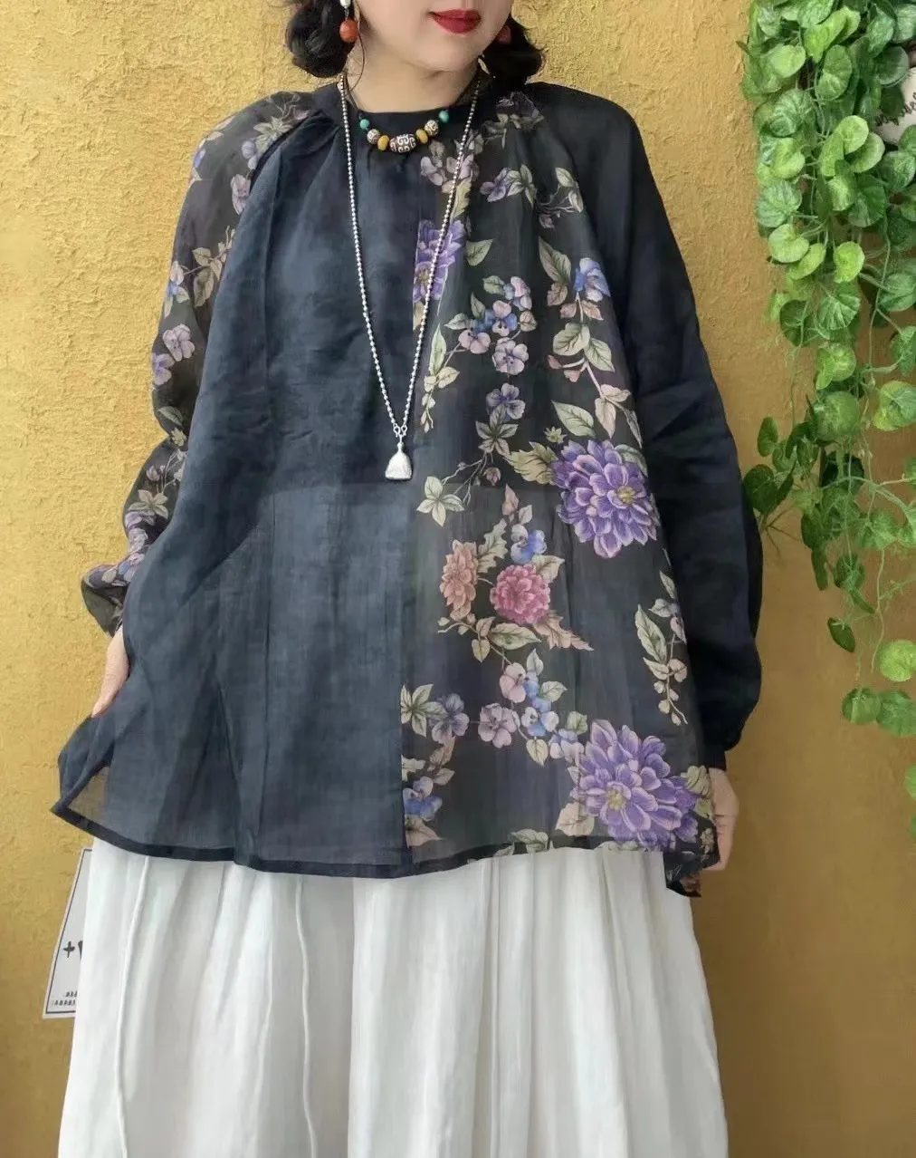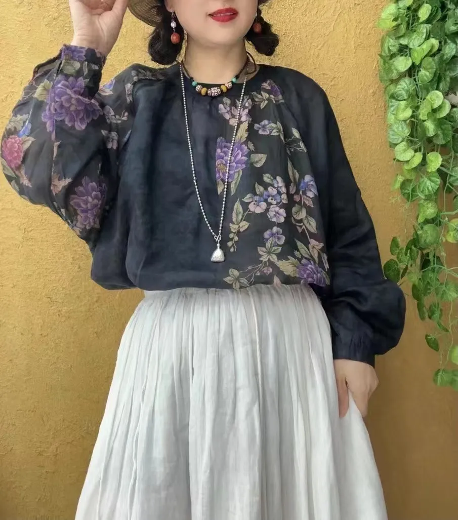 衣都精品- 新款民族風文藝套頭復古寬鬆休閒印花上衣