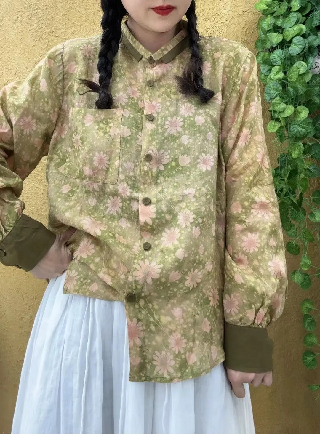 衣都精品- 新款民族風重工繡花包扣開襟歐根紗拼接上衣